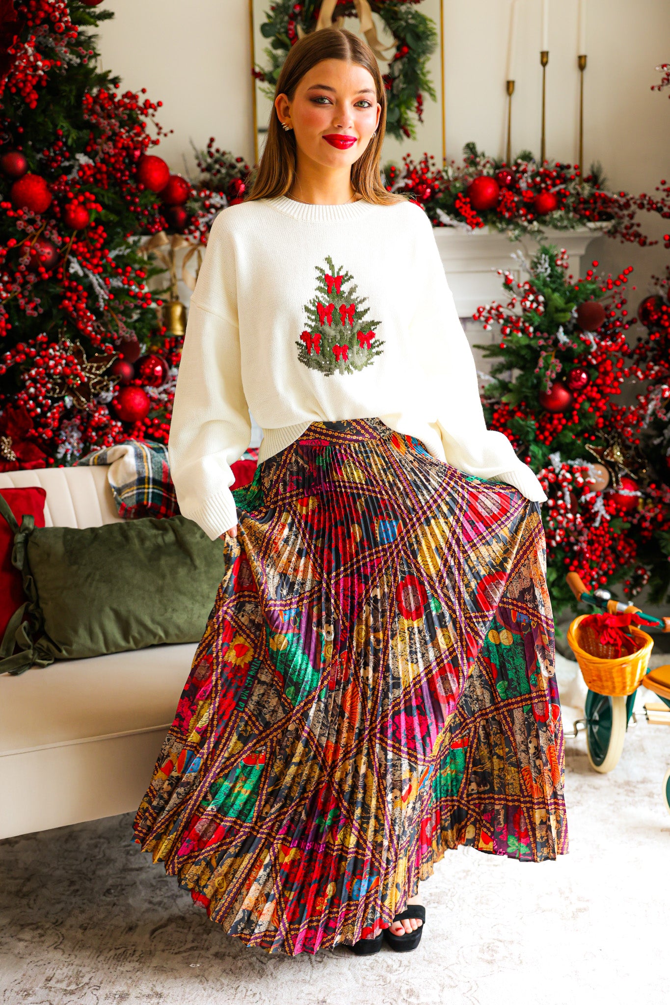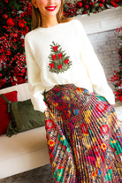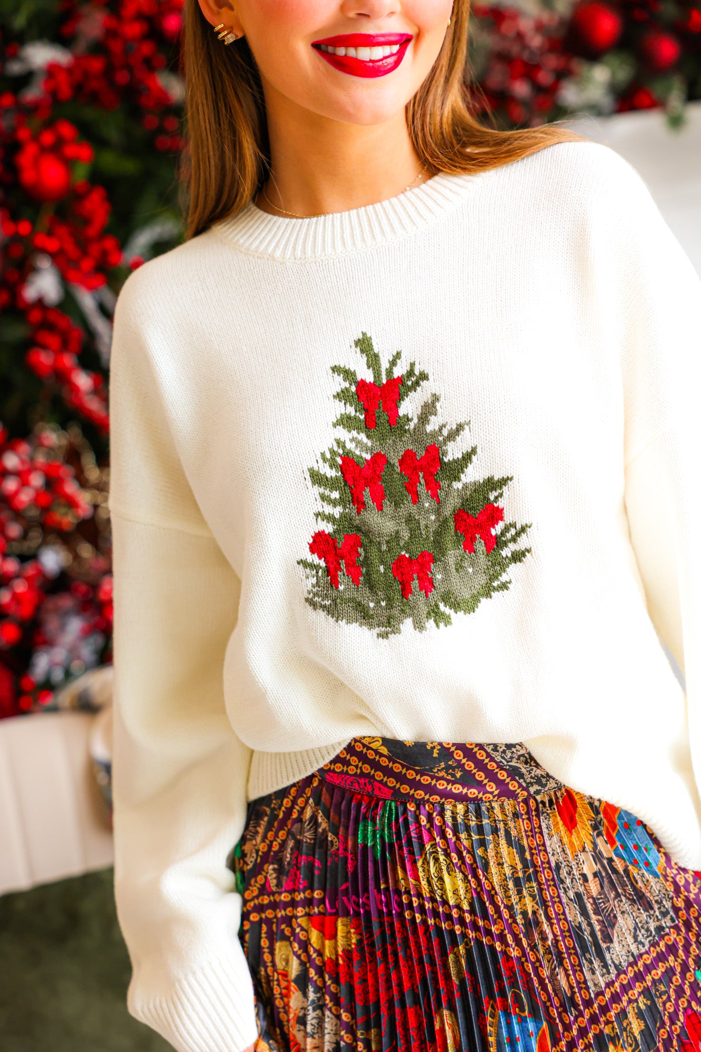 Celebrate the season in style with this charming Bow Christmas Tree White Sweater! Perfect for holiday gatherings, festive parties, or cozy nights in, this eye-catching piece features a delightful Christmas tree design adorned with an elegant bow! The crisp white base makes it versatile enough to pair with your favorite jeans or holiday skirts! Soft, comfortable, and undeniably festive, this sweater is sure to spread Christmas cheer wherever you go! Don't miss out on this must-have seasonal essential!