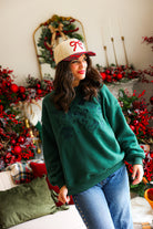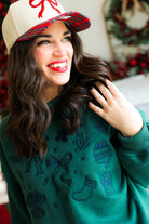 Elevate your holiday wardrobe with this stunning Dark Green Embroidered Ornament Sweatshirt! The rich, festive green hue pairs beautifully with intricate ornament embroidery that adds sophisticated charm to any casual look! Perfect for cozy gatherings, festive outings, or simply spreading seasonal cheer in style! This versatile piece transitions seamlessly from day to night, making it an essential addition to your collection! Wrap yourself in comfort and elegance this holiday season!