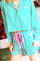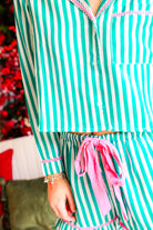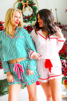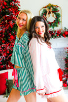 Embrace holiday cheer with the Merry & Bright PJ Set in green. Crafted from soft, cozy fabric, this set offers comfortable warmth perfect for festive nights and relaxing mornings. Its vibrant color and joyful design bring a spirited touch to your loungewear, making every moment merry and bright. Perfect for cozying up or gifting during the season.