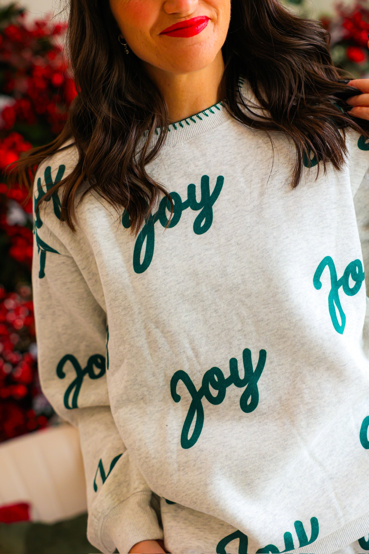 Experience cozy comfort and cheerful style with the Gray & Green Joy Stitch Neckline Sweatshirt. Its soft fabric and unique stitched neckline add a fresh, playful touch to your casual wardrobe. Perfect for layering or wearing on its own, this sweatshirt keeps you warm while spreading a joyful vibe wherever you go. Elevate your everyday look with a blend of comfort and charming design.