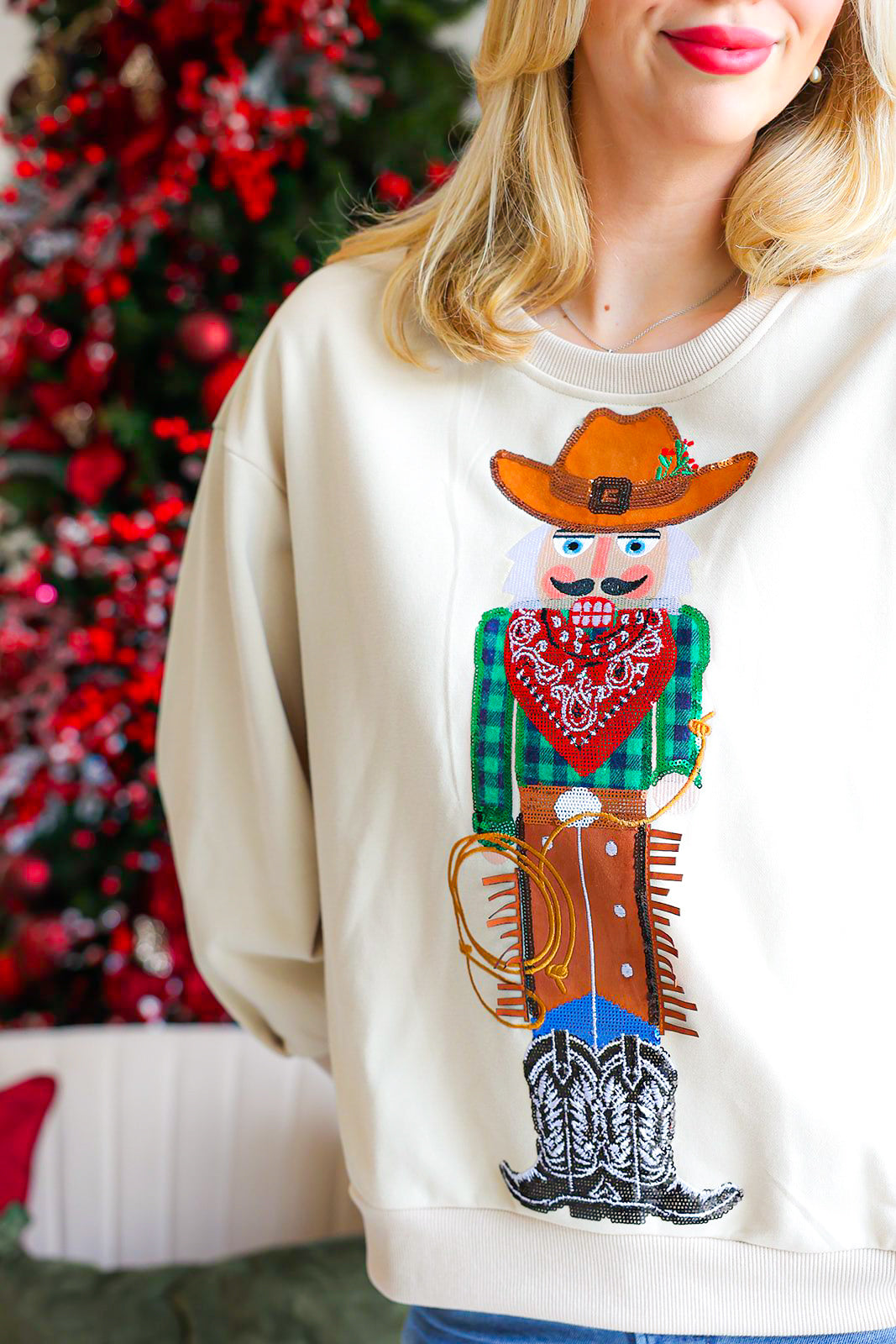 Beige Cowboy Nutcracker Sweatshirt Queen of Sparkles