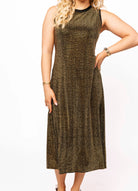 Covered in shimmering black + gold rhinestones, this sparkly midi dress blends comfort, stretch, and high-glam sparkle. Whether you’re dancing all night, heading to a winter wedding, or hosting a holiday soirée, this dress brings major WOW factor. 💫🔥