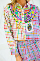 Colorblock Mardi Gras Gingham King Cake Button Up Top Queen of Sparkles