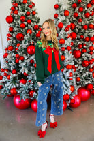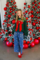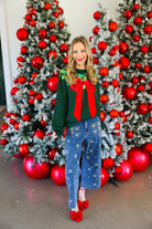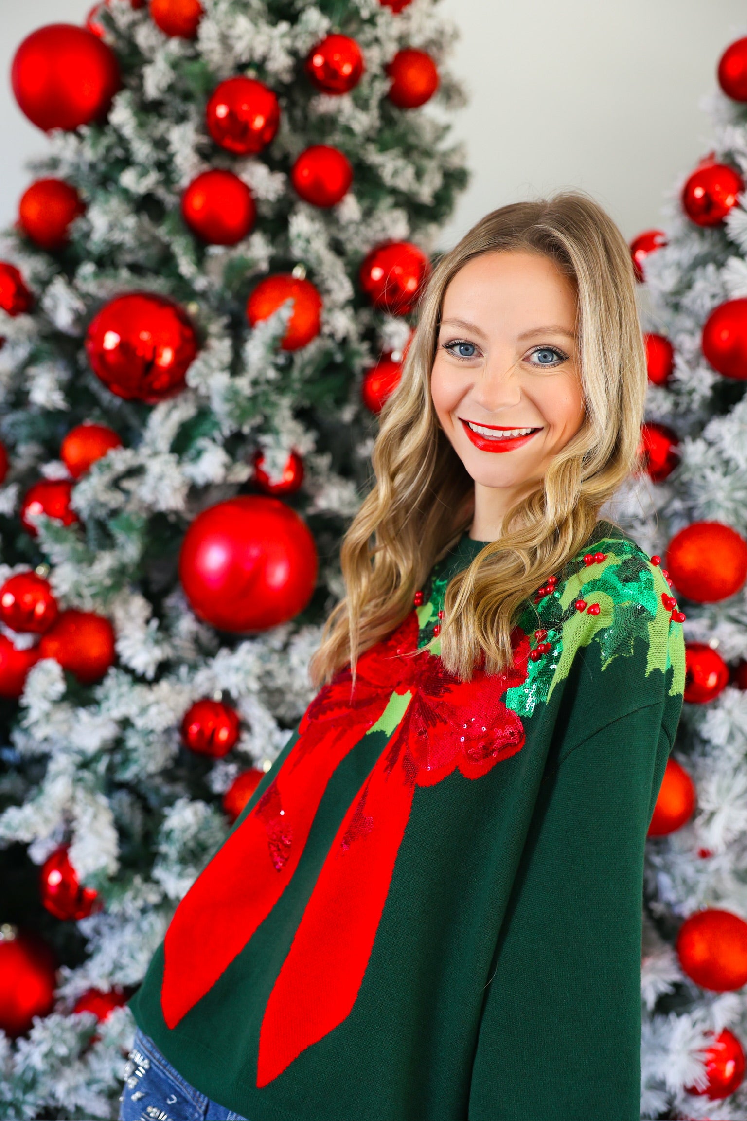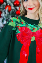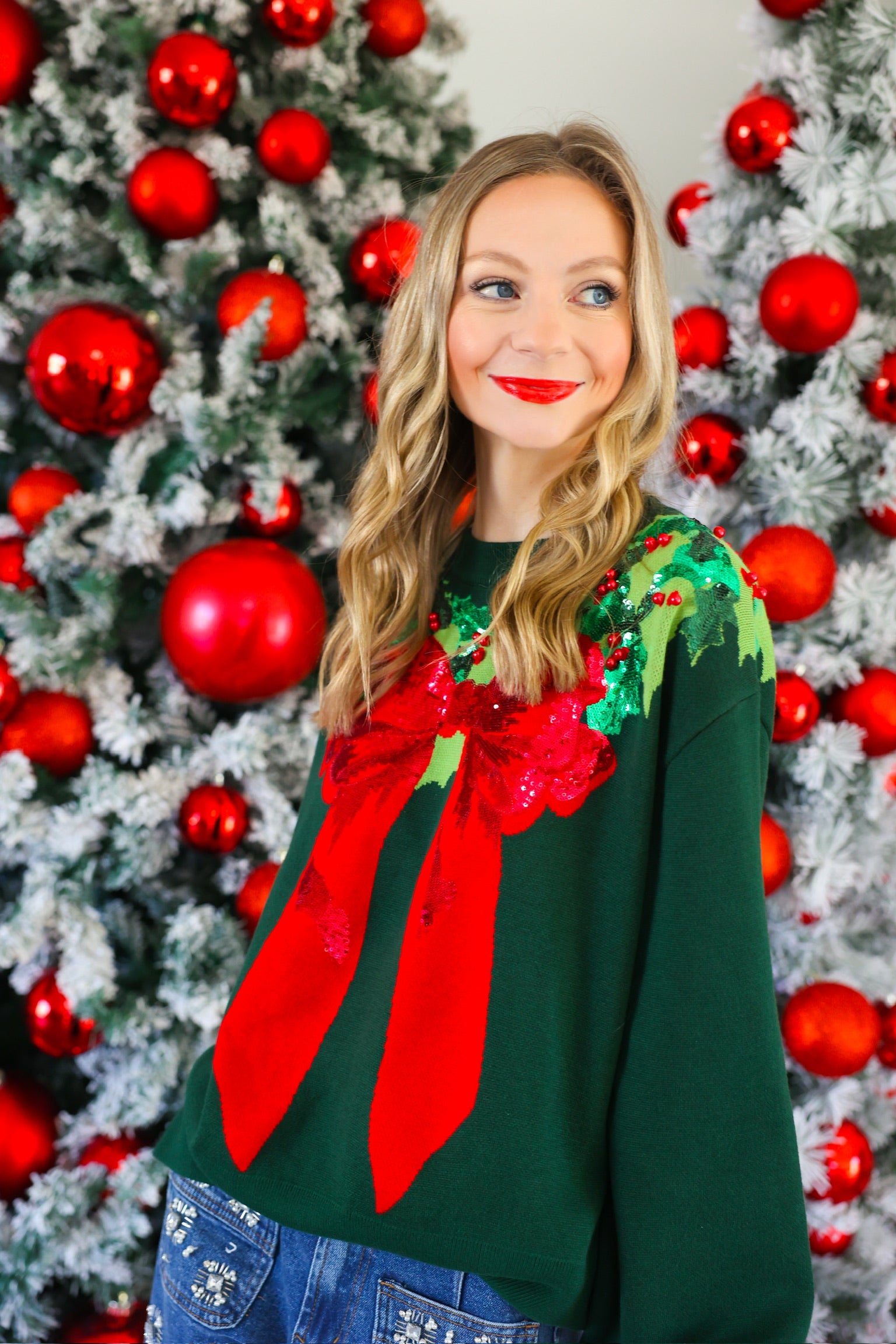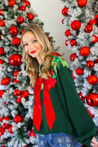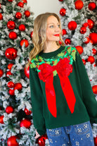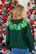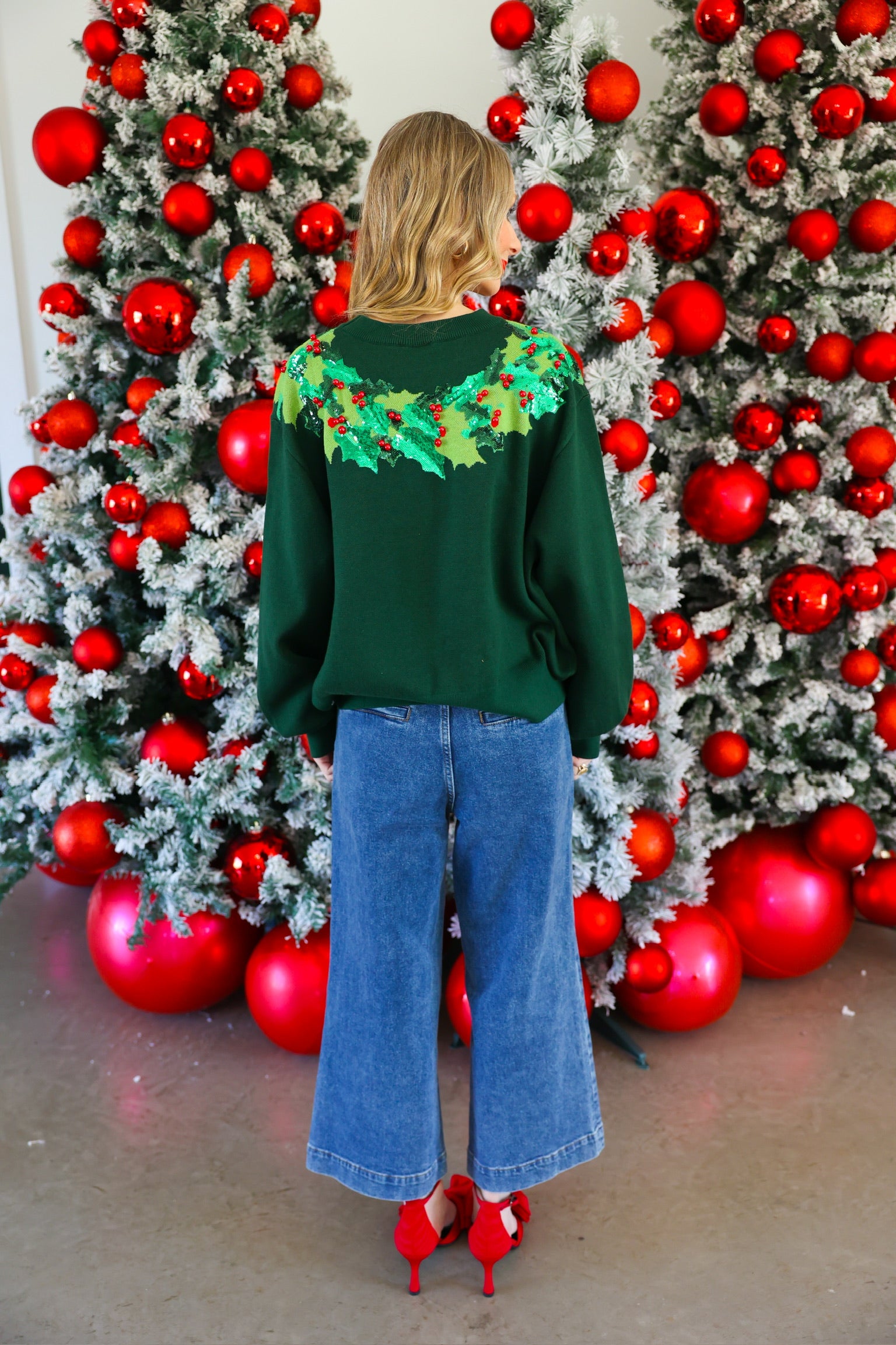 Celebrate the season in style with this Dark Green & Red Wreath Around Neck Sweater. Featuring a festive wreath design elegantly placed around the neckline, this sweater brings holiday cheer to your wardrobe. Its rich colors and cozy fit make it perfect for family gatherings or holiday parties, keeping you comfortable and spirited all day long. Embrace warmth and festive charm effortlessly with this standout piece.