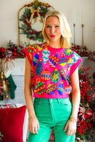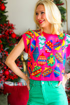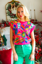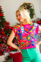Make every moment sparkle with this vibrant hot pink top, embellished with multi-jeweled ornaments for a dazzling effect. Designed for comfort and style, it adds a festive pop of color and shimmer to any outfit. Perfect for holiday celebrations, your child will shine as the queen of sparkles wherever they go.