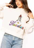 Show your H-Town pride with sparkle in the Light Beige “Houston” City Icon Sweatshirt by Queen of Sparkles 🤠🚀✨ This ultra-cozy sweatshirt features a fully sequined Houston city icon paired with multicolor sequin “Houston” lettering for a bold, eye-catching look. Soft, stylish, and effortlessly glam, it’s perfect for game days, rodeo season, concerts, weekend outings, or adding a little extra shine to your everyday wardrobe. A must-have for every Houston queen who loves to stand out! 💖🌆