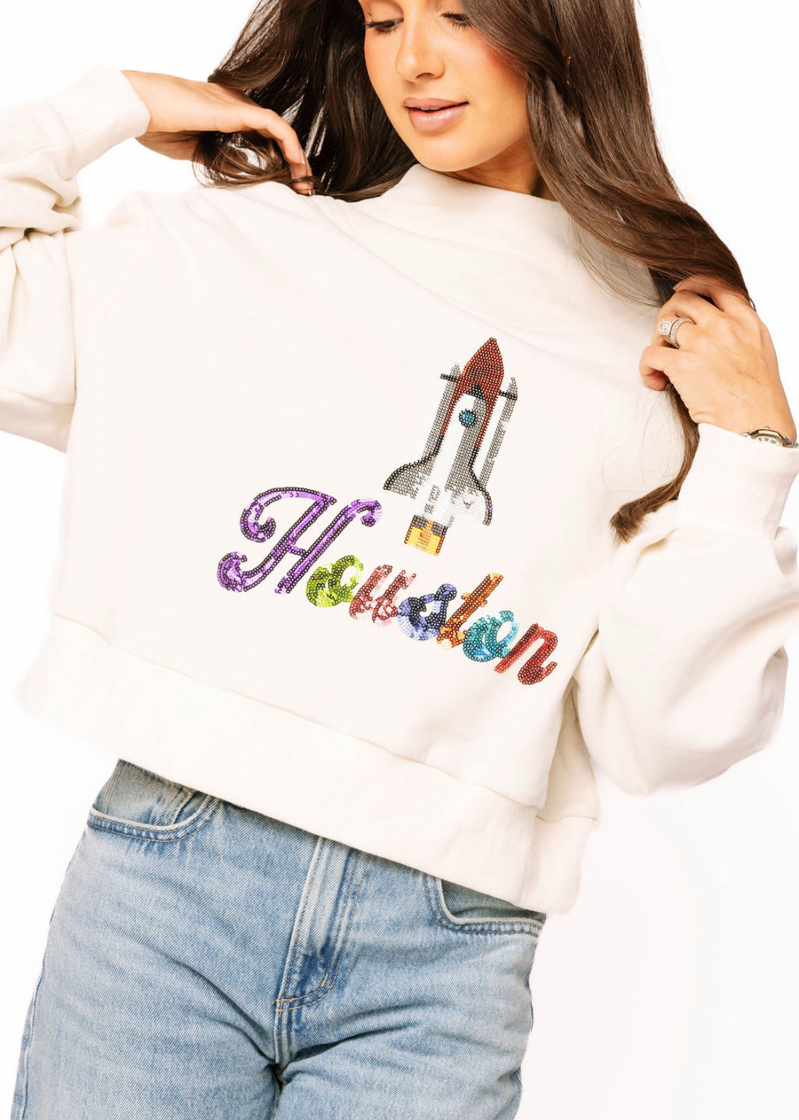Light beige sweatshirt with multicolor sequin “Houston” lettering 🌈