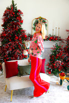 Light Pink & Red Stripe Christmas Icons Button Up Top Queen of Sparkles
