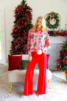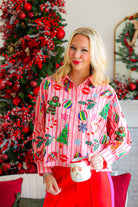 Celebrate the holiday season in style with the Light Pink & Red Stripe Christmas Icons Button Up Top—our perfect pick for the Queen of Sparkles! ✨🎄 - Light pink and red festive stripes for a cheerful look - Adorned with holiday icons to spread seasonal joy - Fitted button-down design that runs true to size for a flattering fit - Ideal for holiday gatherings, parties, or cozy winter days - Effortlessly festive and oh-so-charming! Sparkle bright and make every moment merry with this must-have holiday top! 🎅💖
