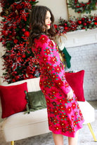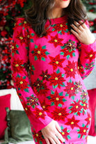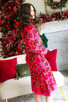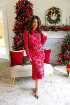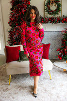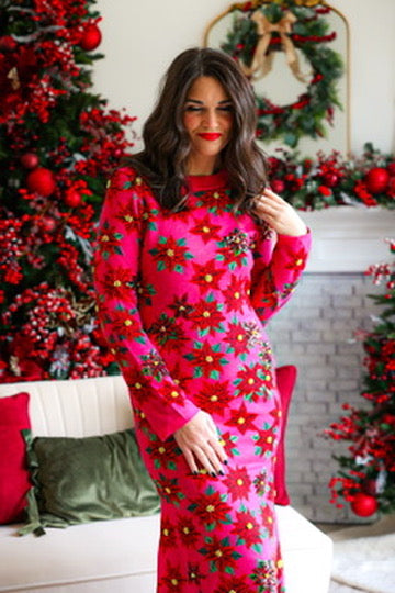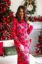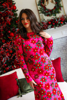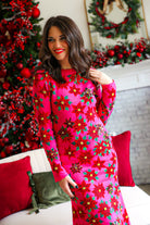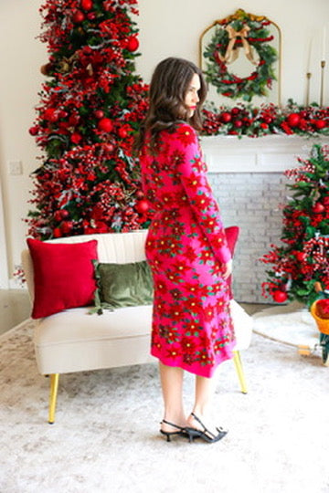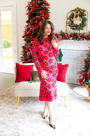 Pink & Red Poinsettia Knit Midi Dress Queen of Sparkles