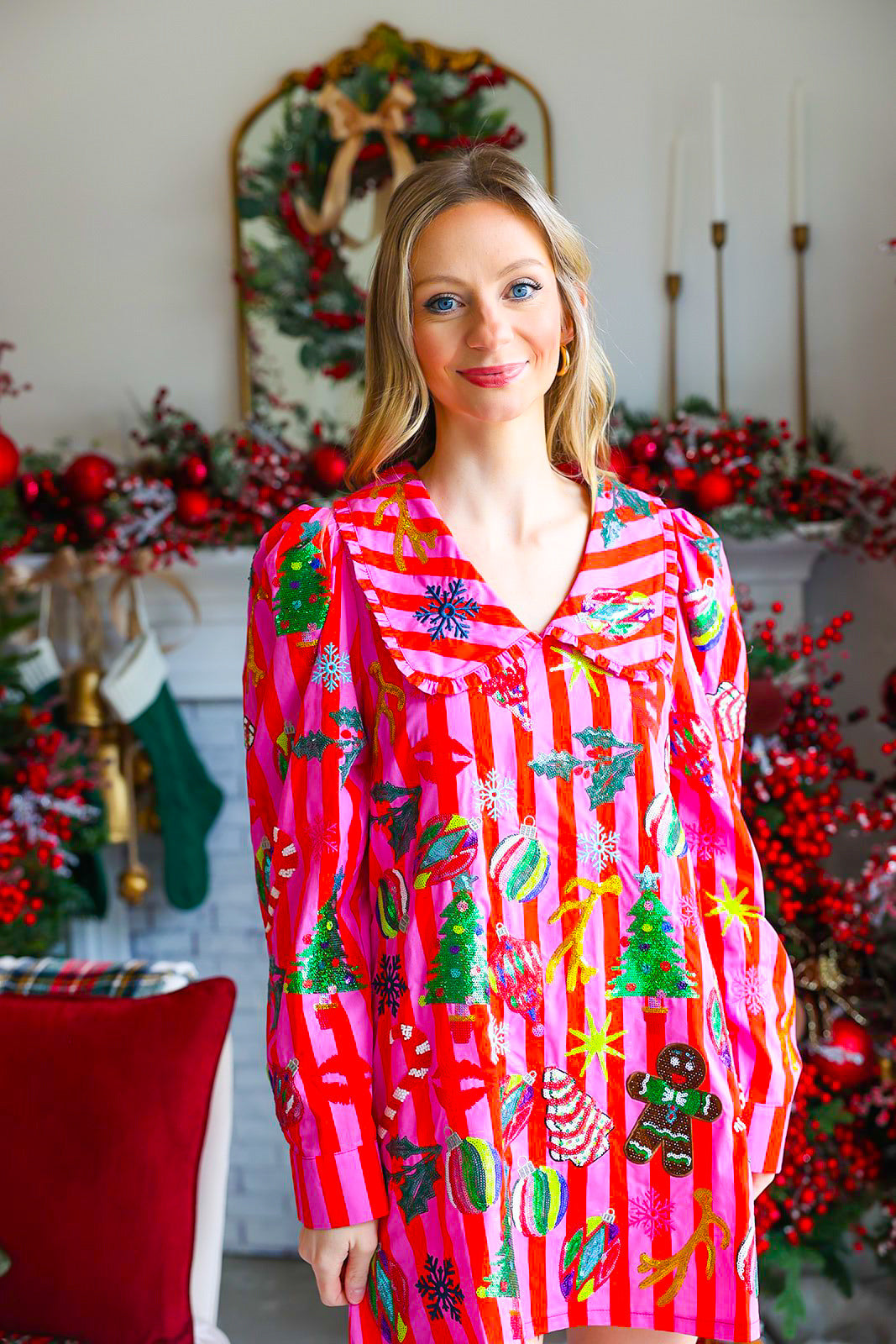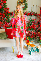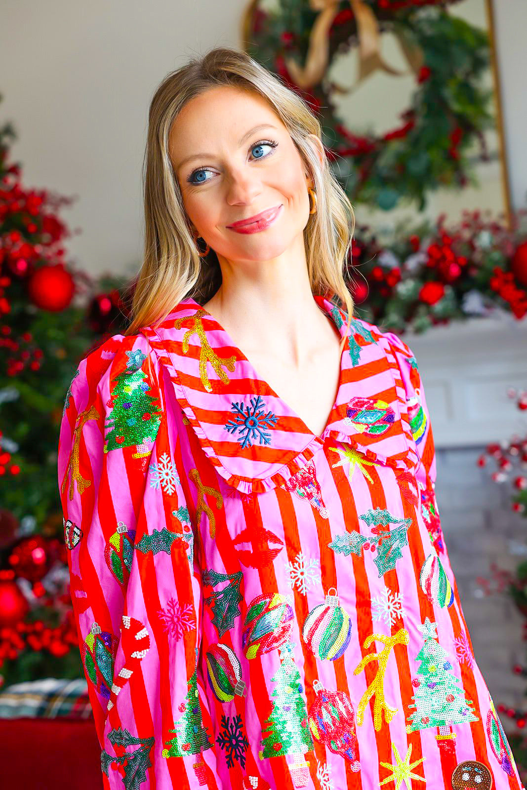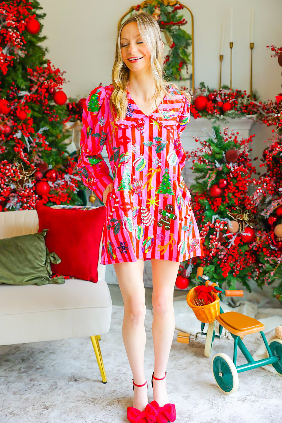 Pink & Red Stripe Christmas Icon Collar Dress Queen of Sparkles