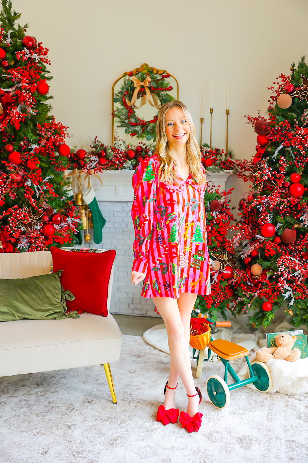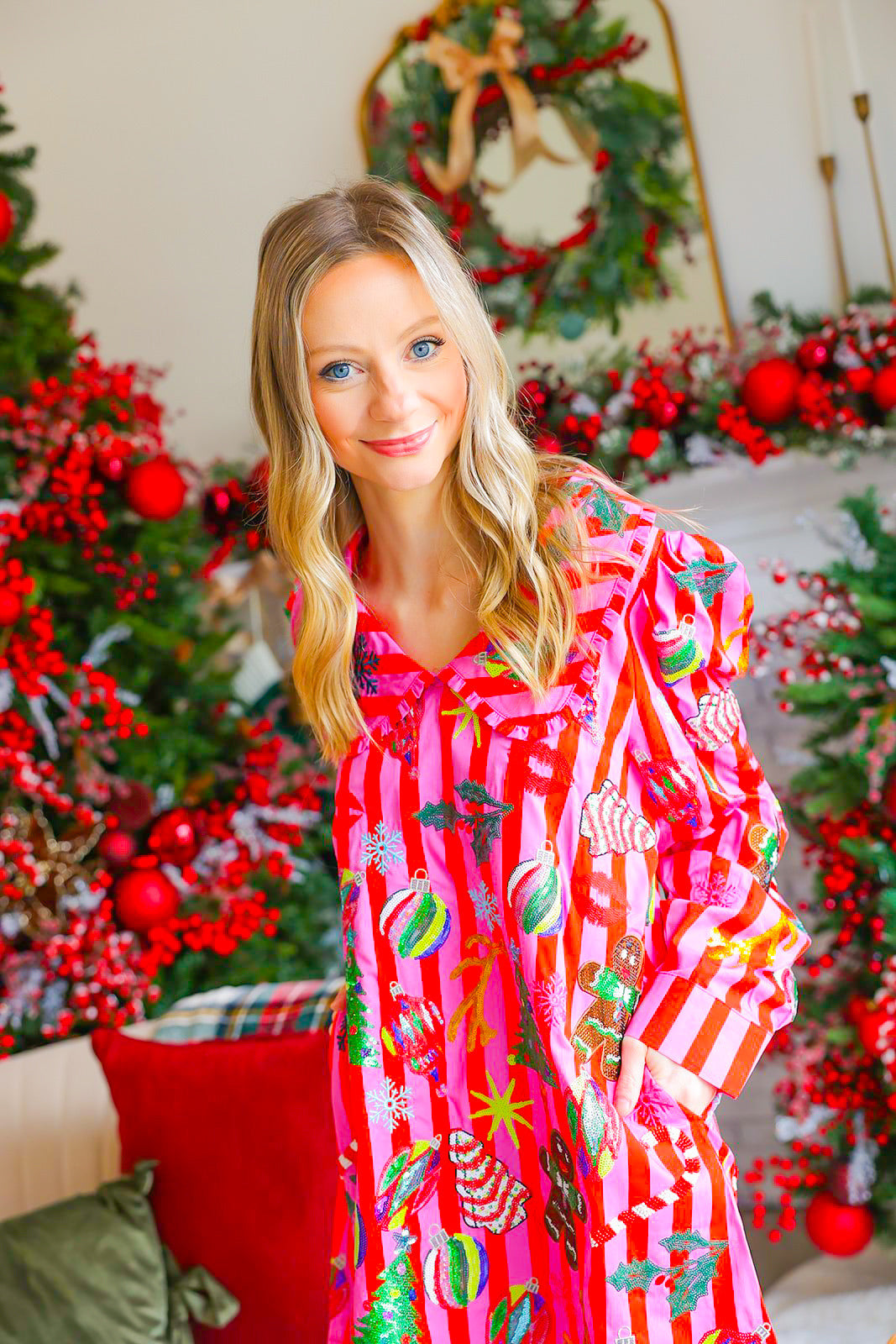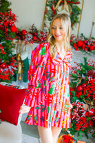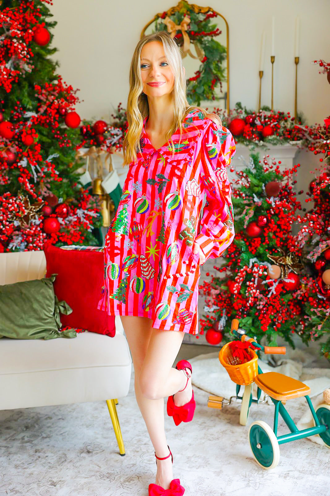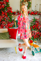 Pink & Red Stripe Christmas Icon Collar Dress Queen of Sparkles