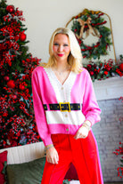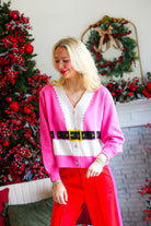 Add a playful twist to your holiday wardrobe with the Pink Santa's Coat Cardigan, designed for the Queen of Sparkles. This cozy cardigan features festive Santa-inspired details in a soft pink hue, blending charm and comfort effortlessly. Perfect for layering over your favorite outfits, it brings warmth and a touch of holiday magic to every occasion, making you the sparkling star of the season.