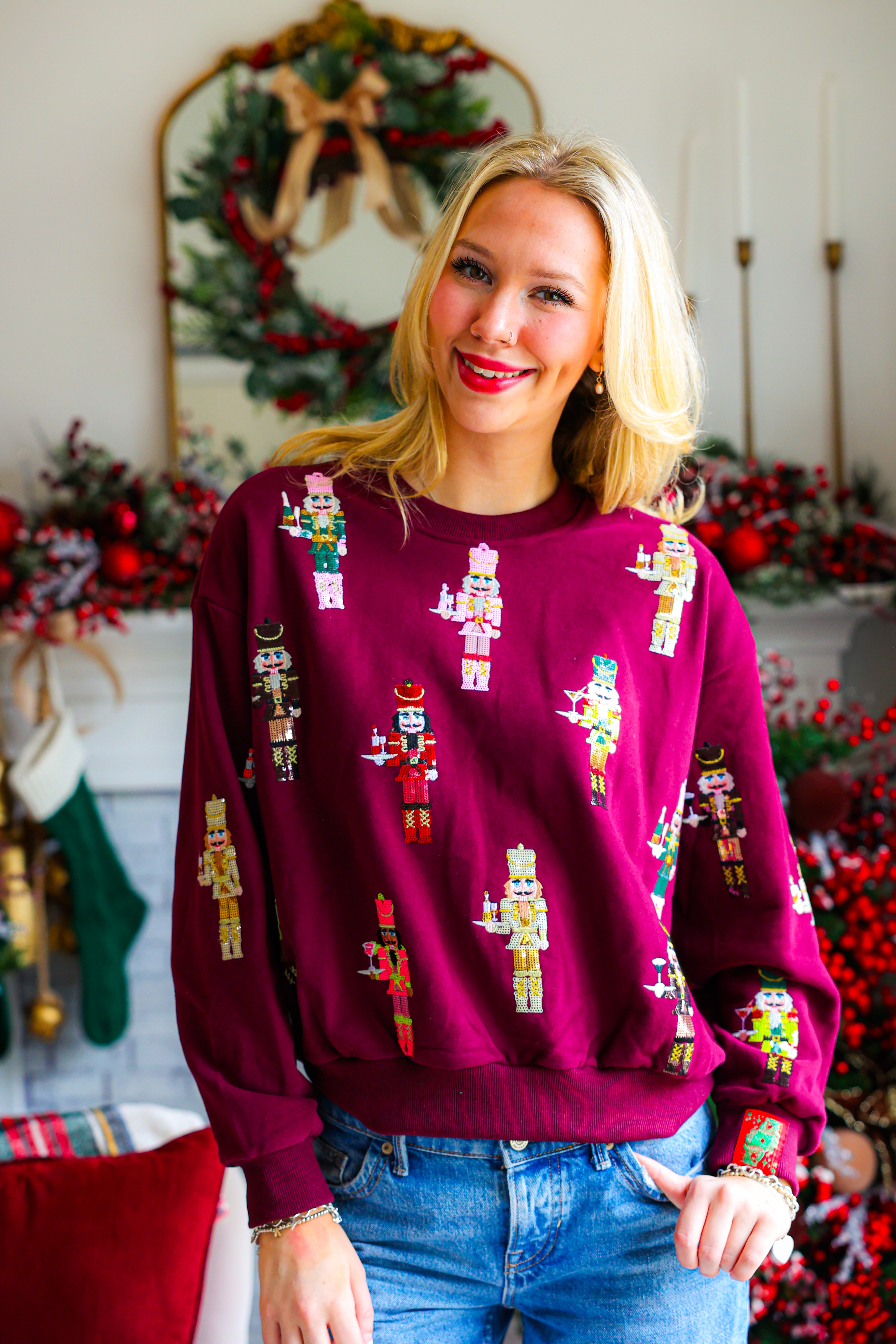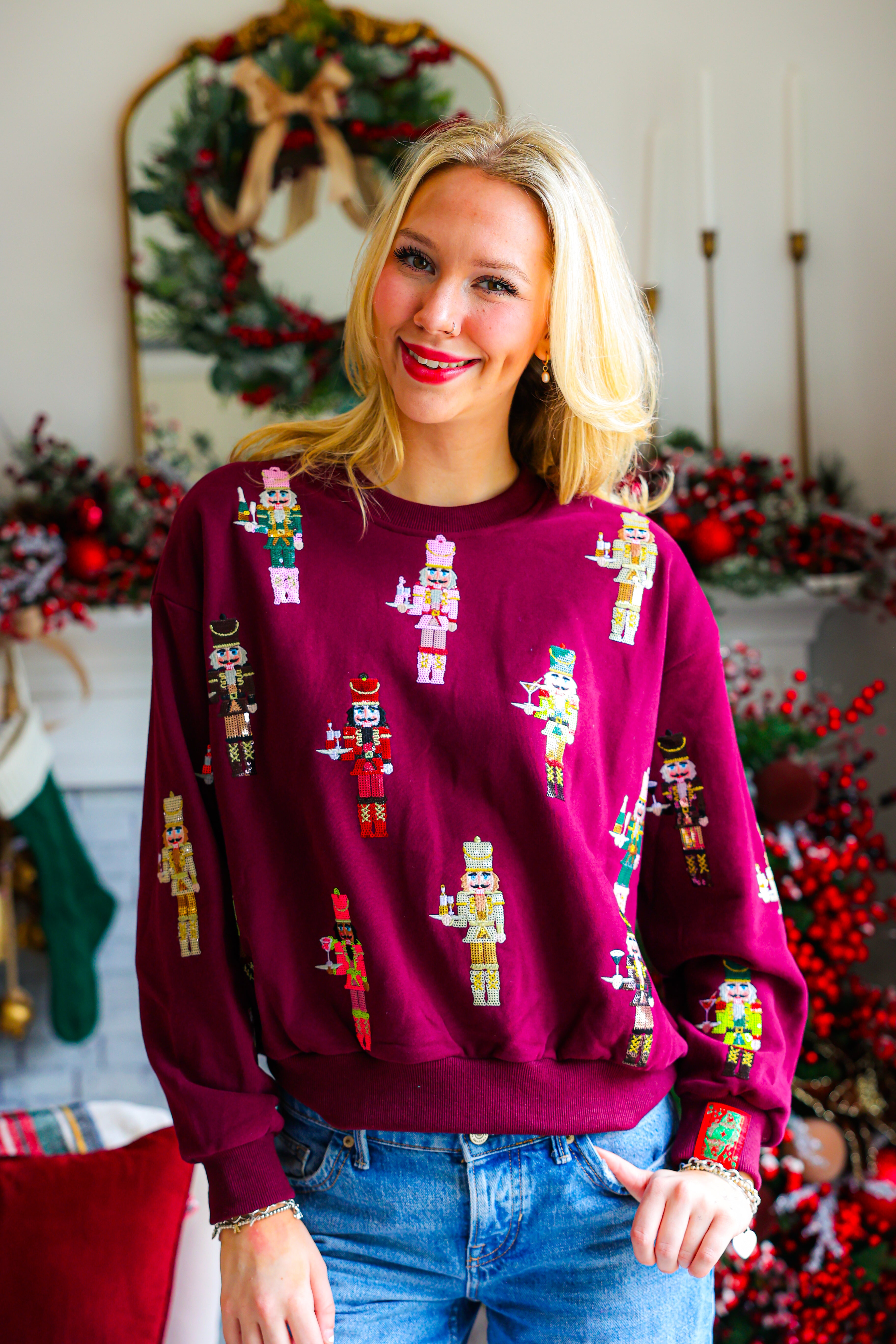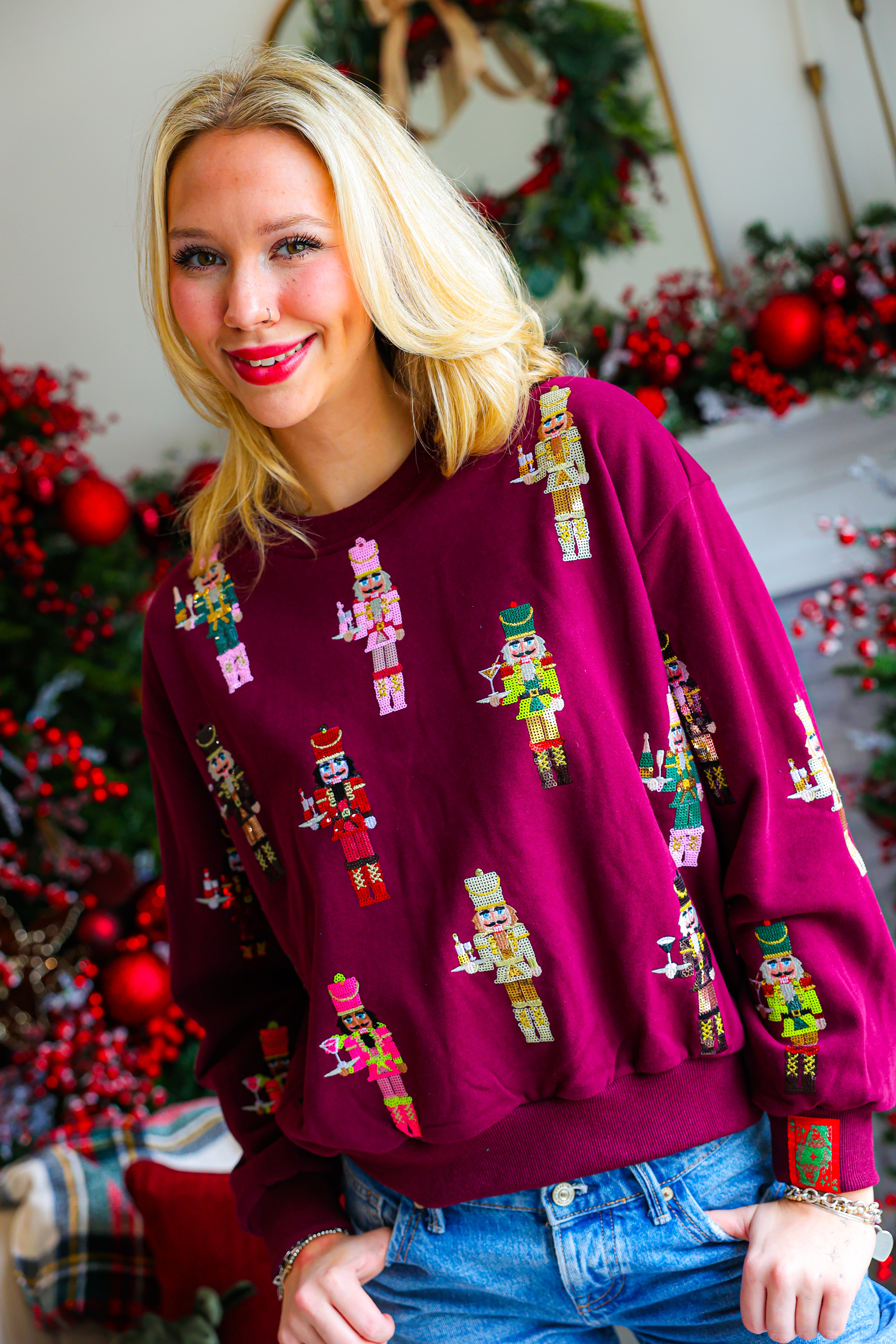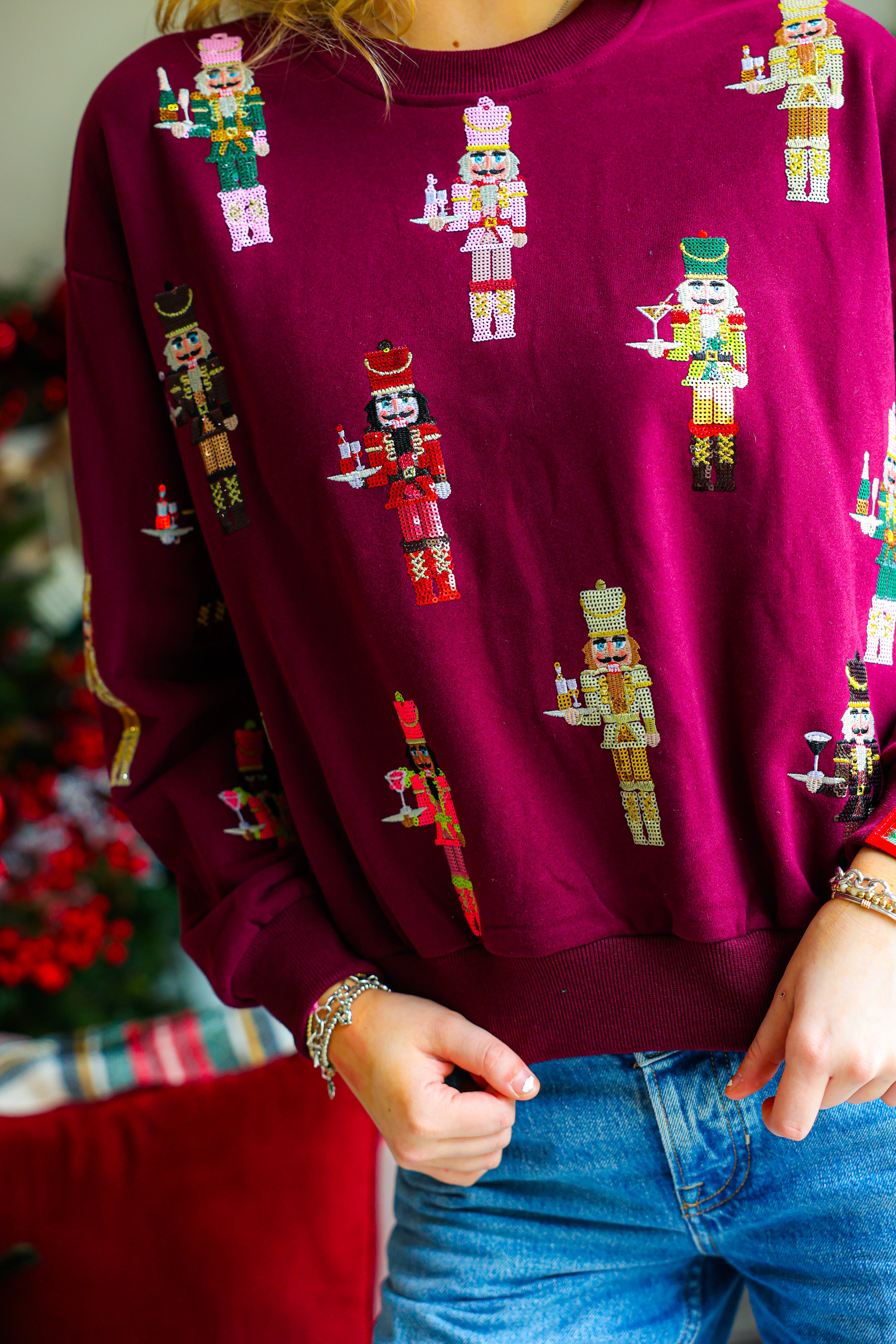 Plum Cocktail Serving Nutcracker Sweatshirt Queen of Sparkles