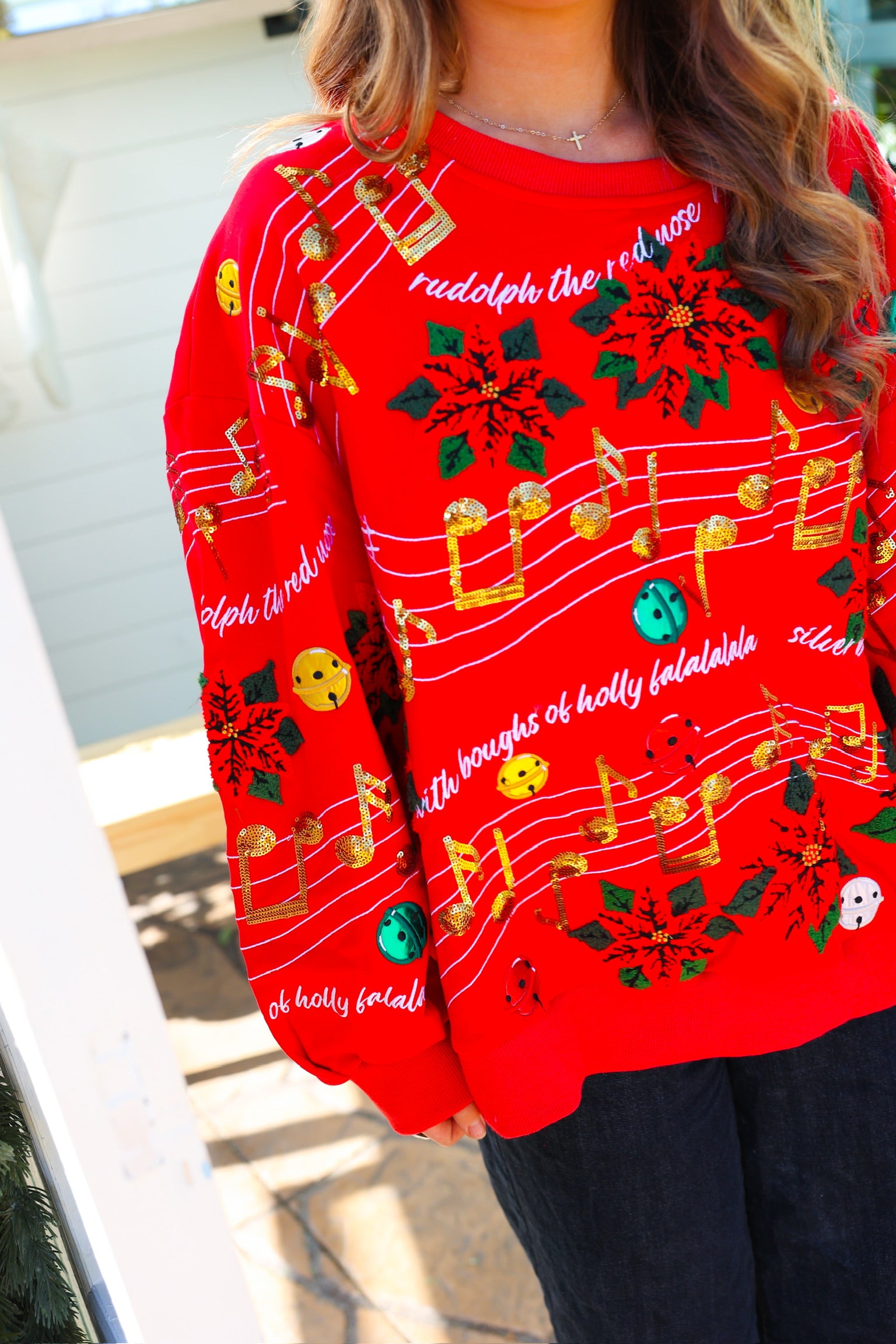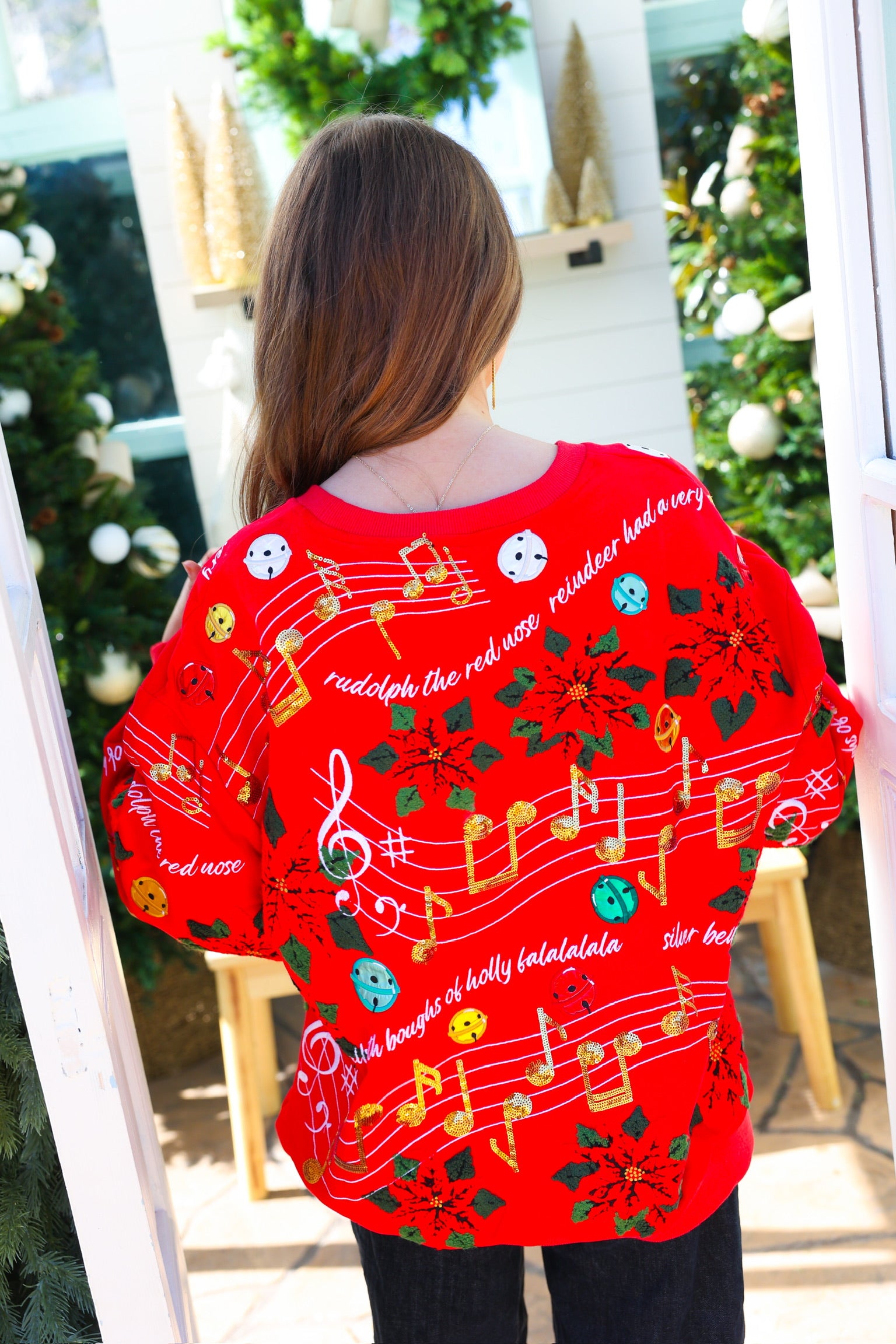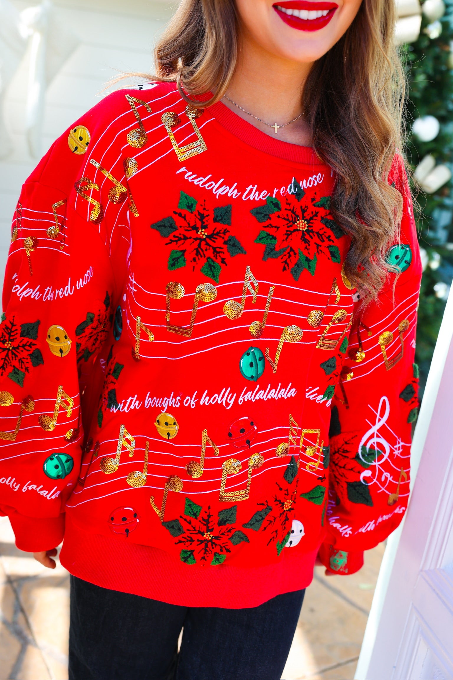 Red Christmas Music Notes Sweatshirt Queen of Sparkles
