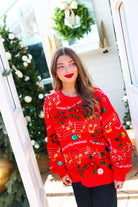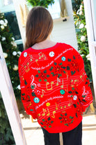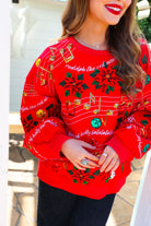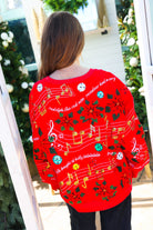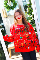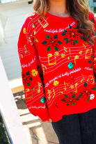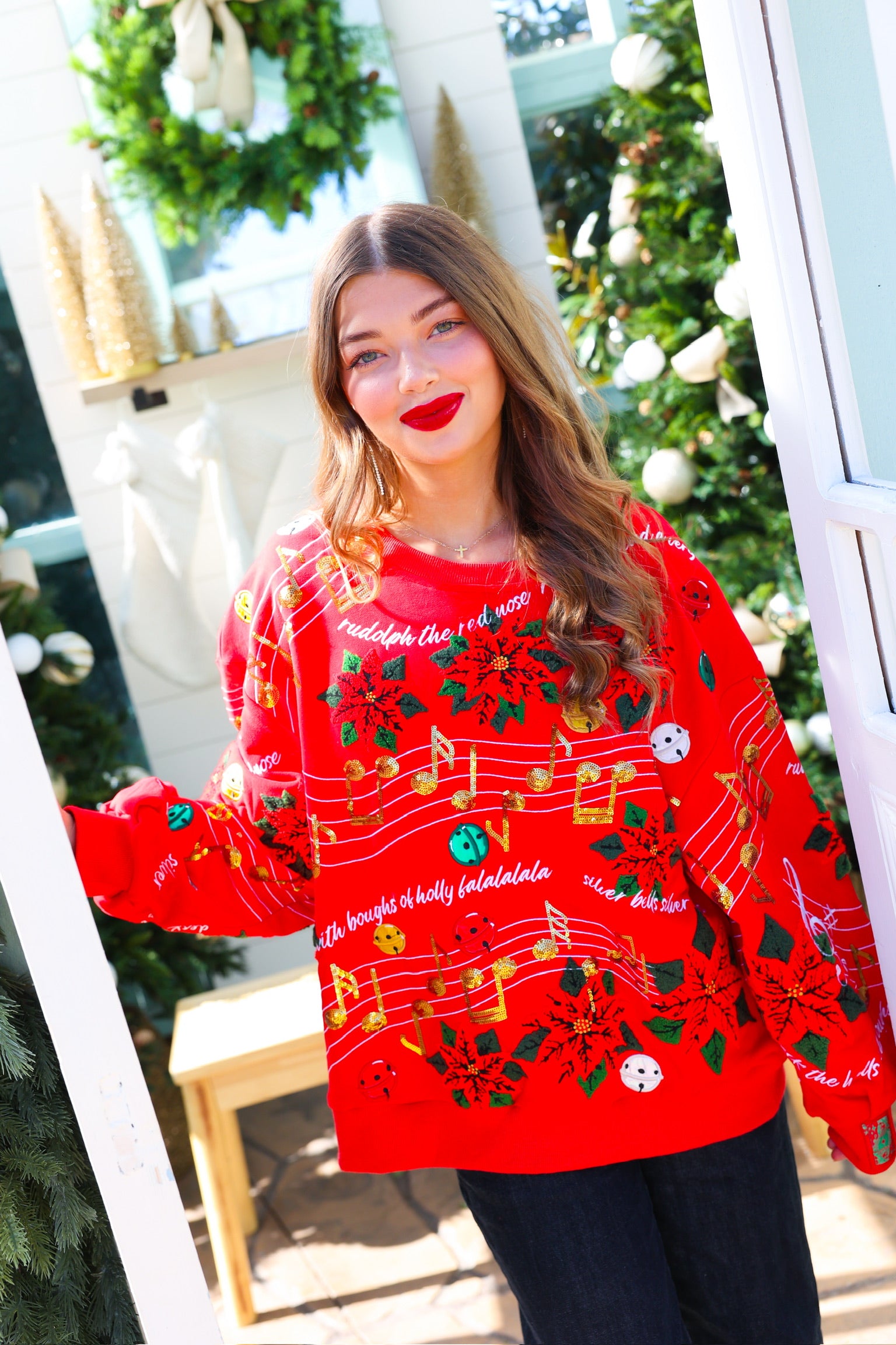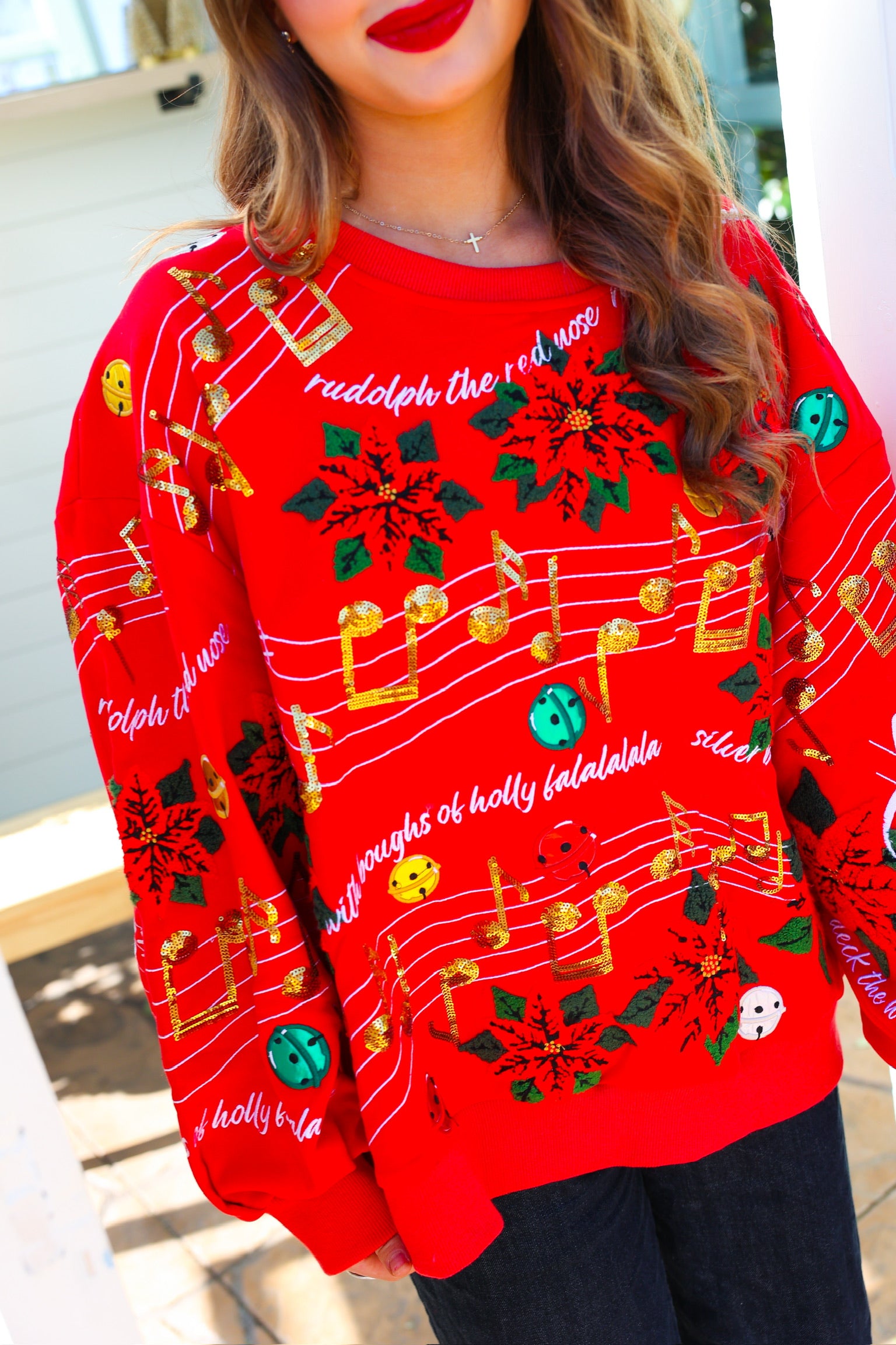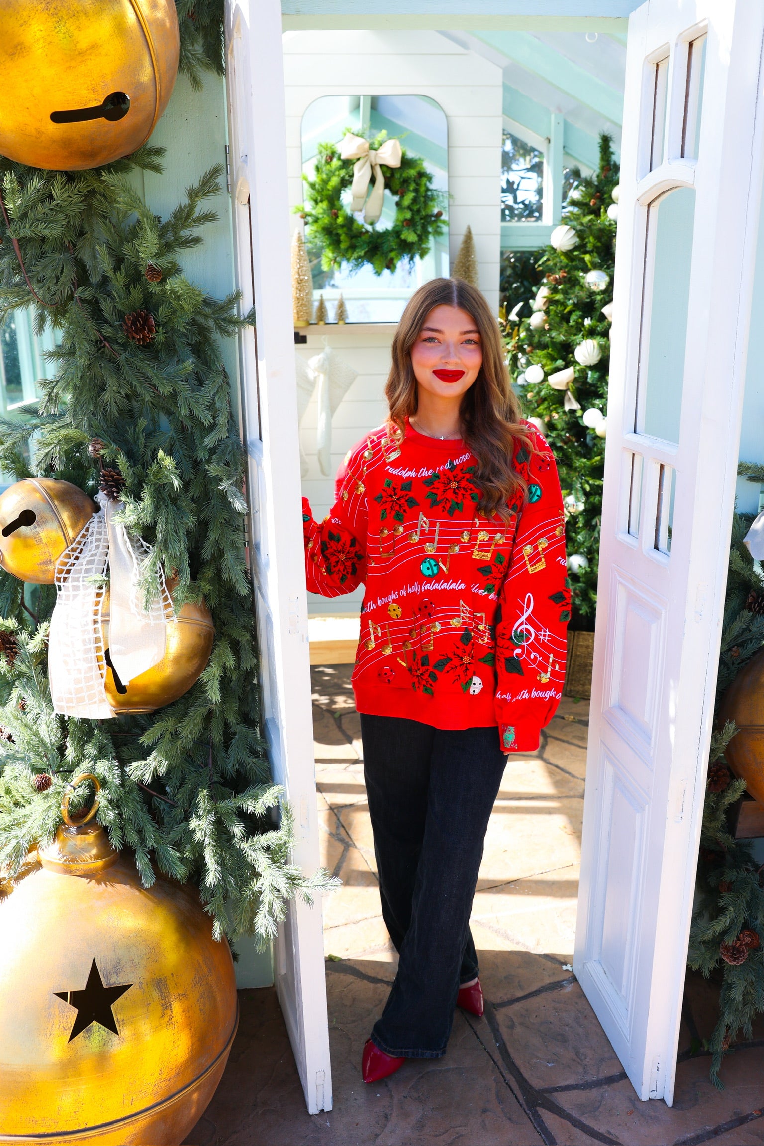 Red Christmas Music Notes Sweatshirt Queen of Sparkles