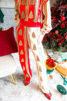 Red & Ivory Striped Christmas Cookie Sweatpant Queen of Sparkles