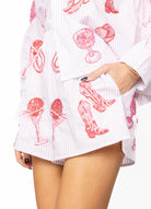 Complete the cutest concert-ready look with the Queen of Sparkles Striped Pink Disco Cowgirl Icon Short 🤠💗✨ Designed to pair perfectly with the matching button-up top, these striped shorts feature all-over pink sequin disco cowgirl icons—glittery boots, hats, cherries, cocktails, and disco balls. Soft, lightweight, and full of sparkle, they deliver both comfort and statement-making style. Whether you’re headed to a concert, rodeo, bachelorette trip, or girls’ night out, these shorts guarantee all eyes on you!