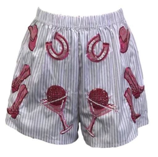 Queen of Sparkles Striped Pink Disco Cowgirl Icon Short