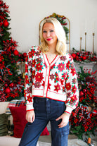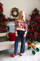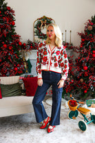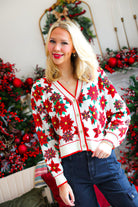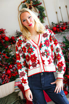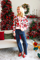 Get ready to shine this holiday season with the White & Red Poinsettia Button Up Cardigan, the ultimate Queen of Sparkles! ✨ Perfect for Christmas cheer, its festive design pairs beautifully with a red or white turtleneck for an effortlessly chic look. Cozy, stylish, and full of holiday magic—this cardigan will make you the star of every celebration! 🎄💃