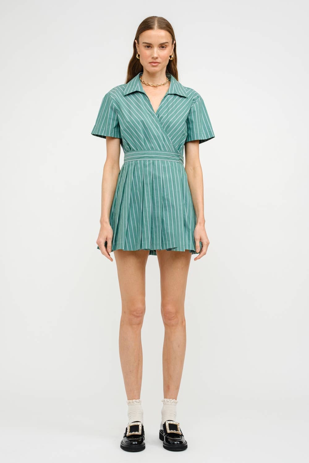 Lola Green Pinstripe Wrap Romper