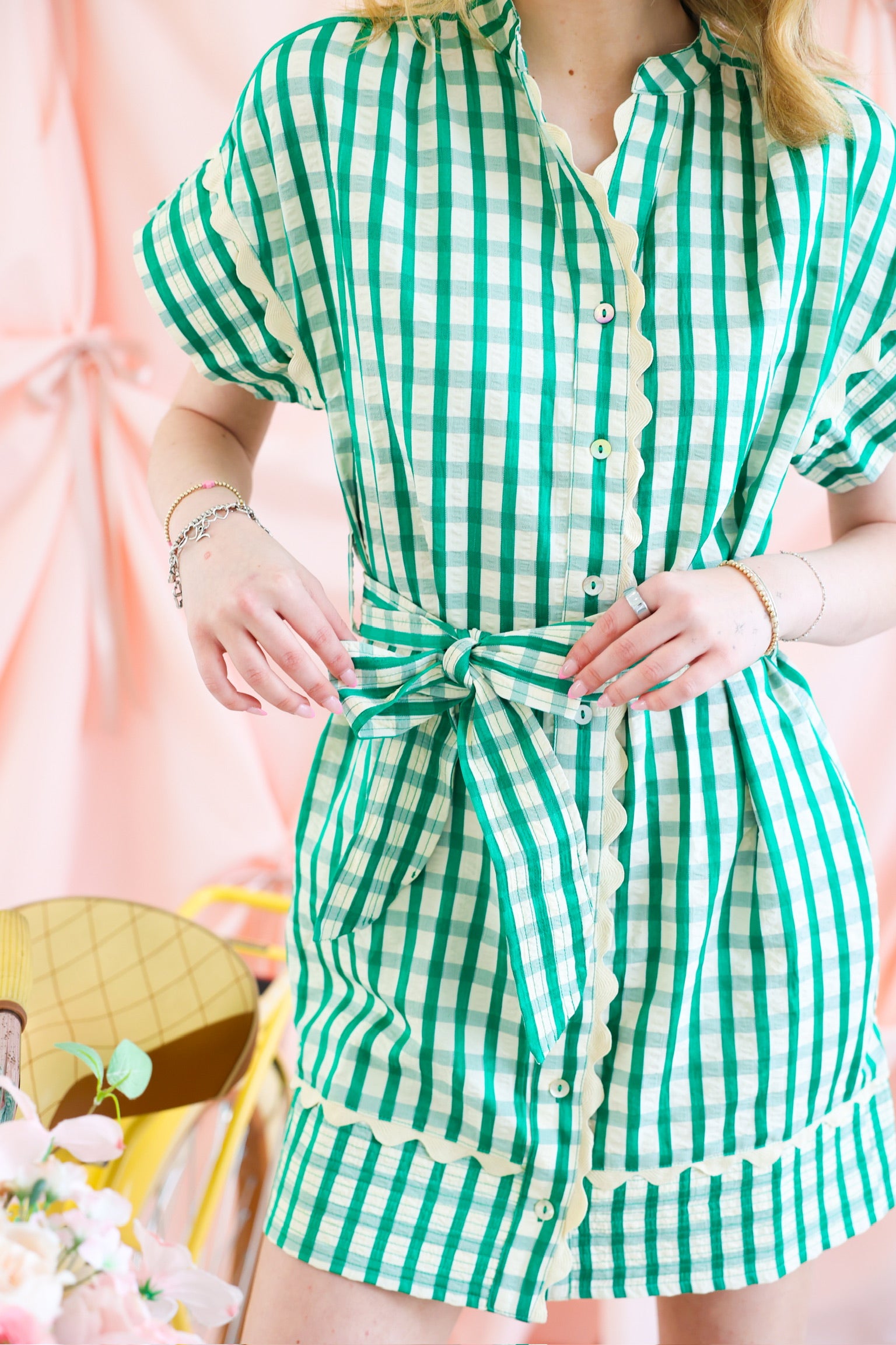 Classic green gingham with a bright, cheerful vibe
