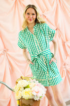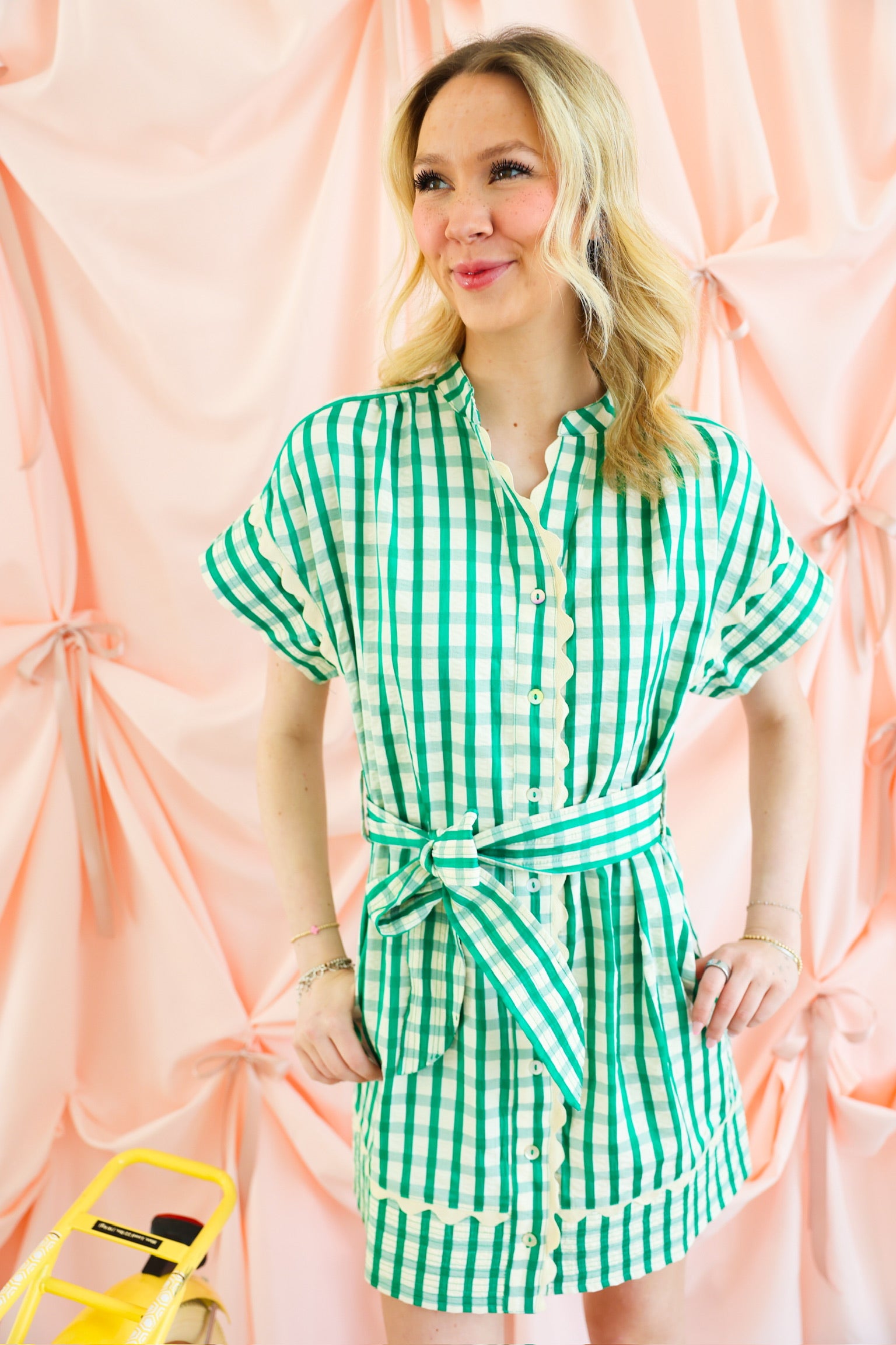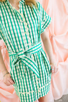 THML Green Gingham Scalloped Tie-Waist Dress