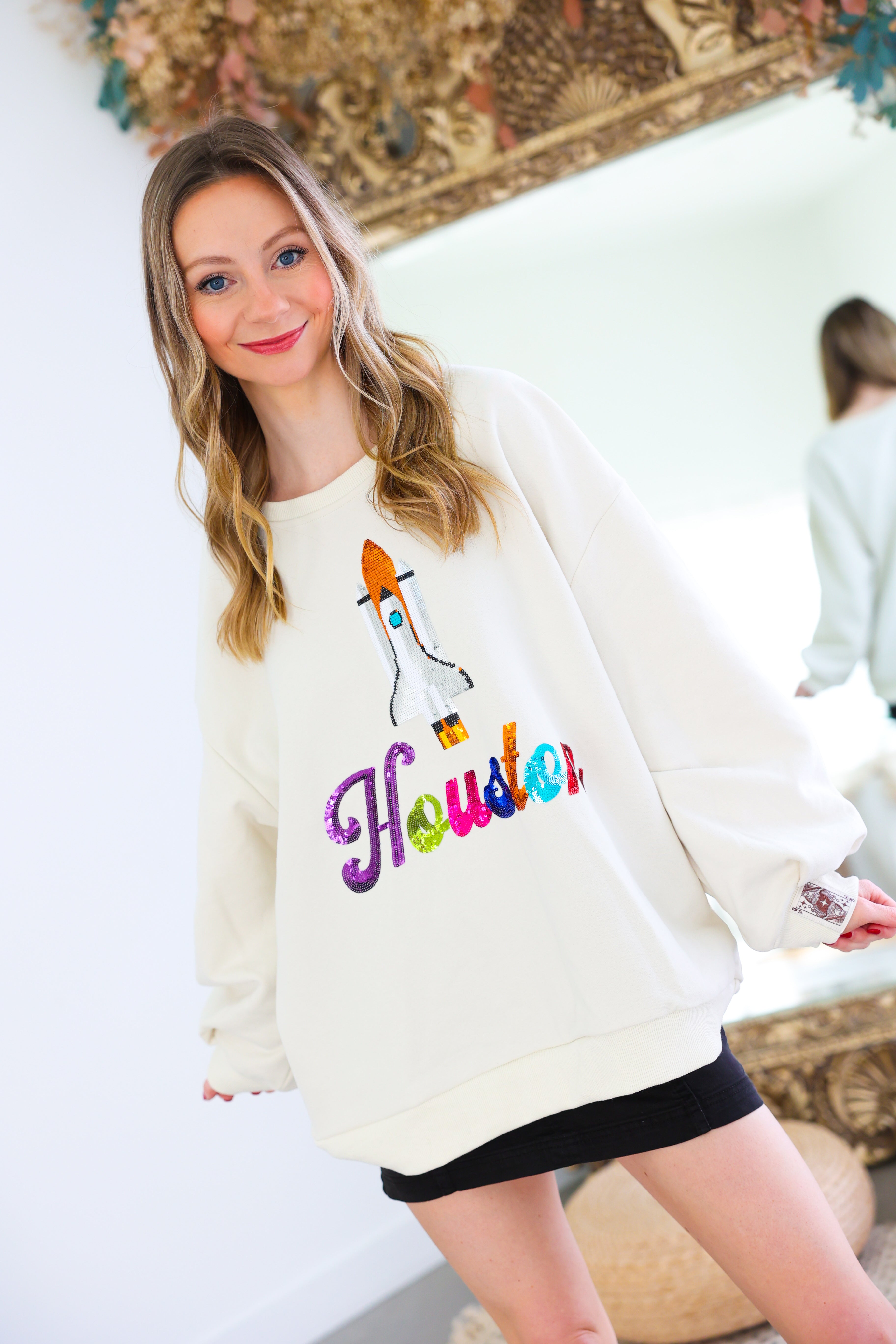 Queen of Sparkles Light Beige "Houston" City Icon Sweatshirt