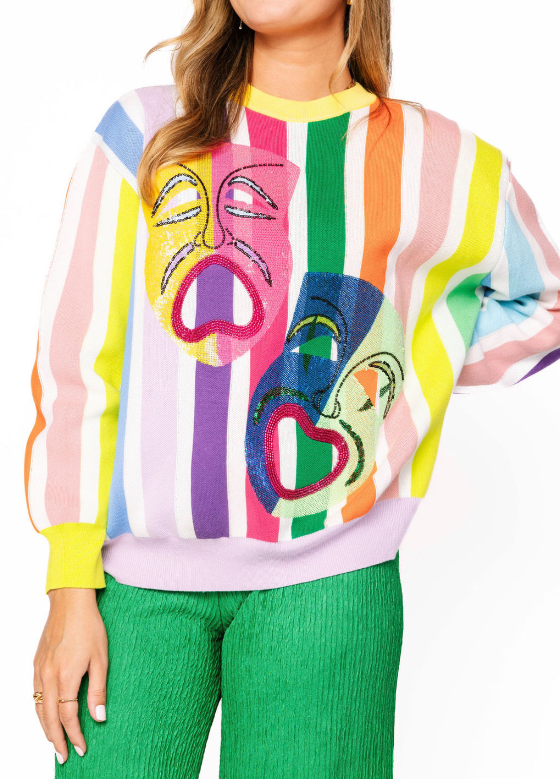 Queen of Sparkles Rainbow Stripe Mask Sweater