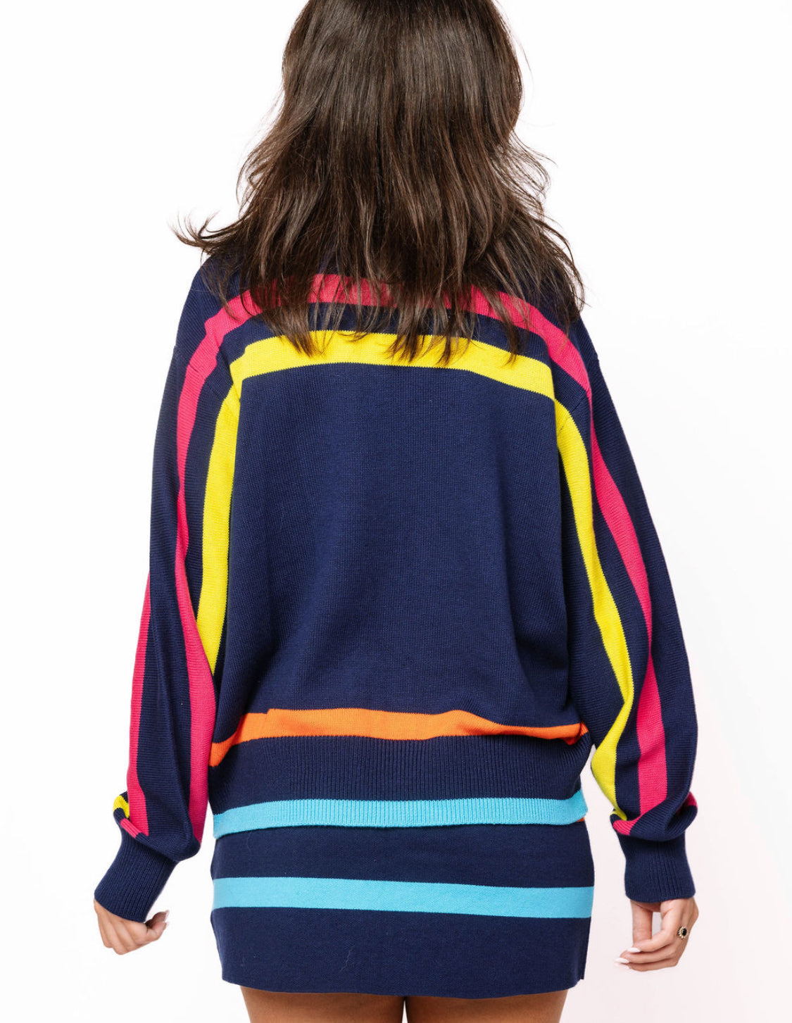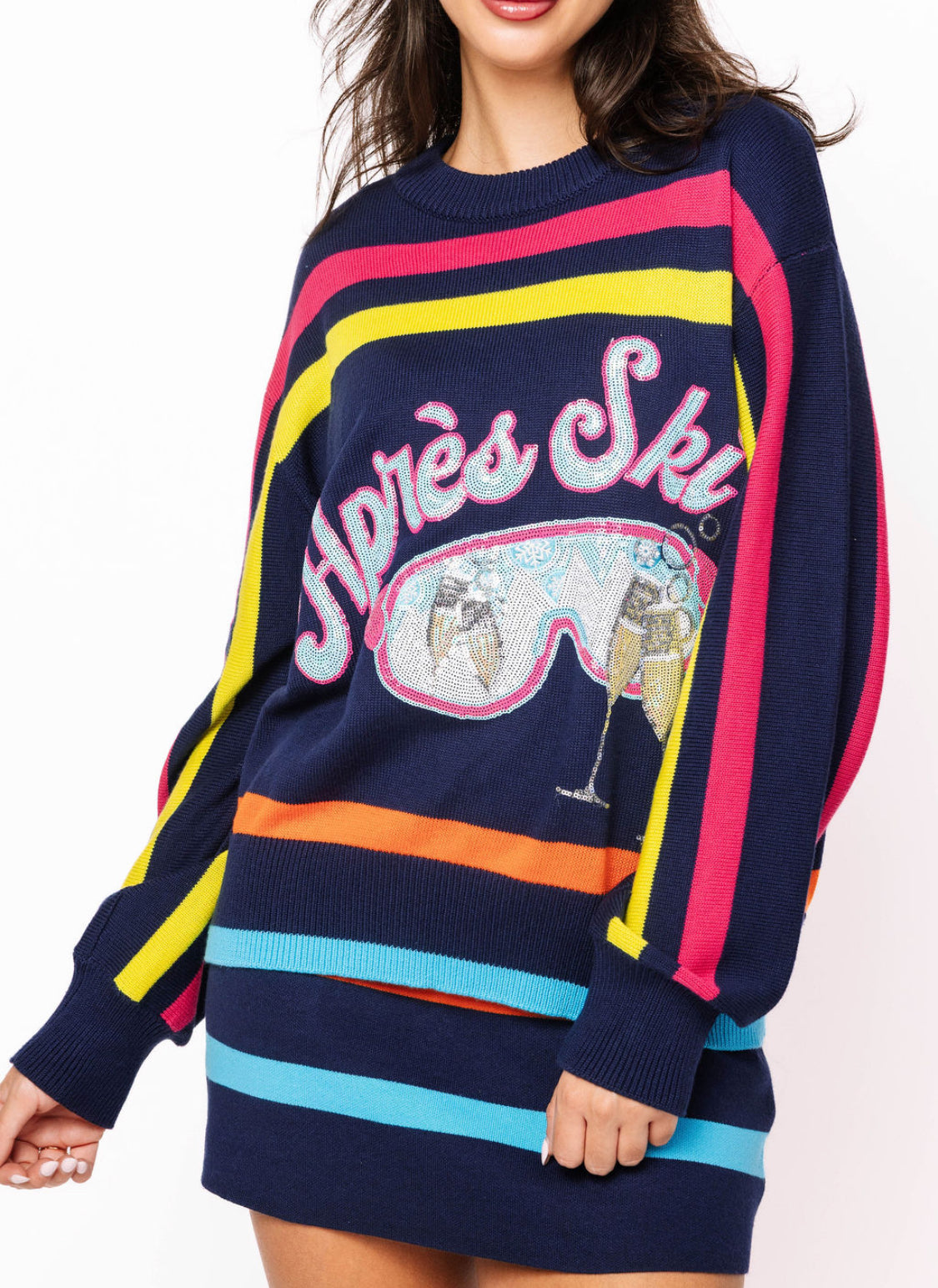 Navy Multi Stripe 'Apres Ski' Goggle Stripe Sweater Queen of Sparkles