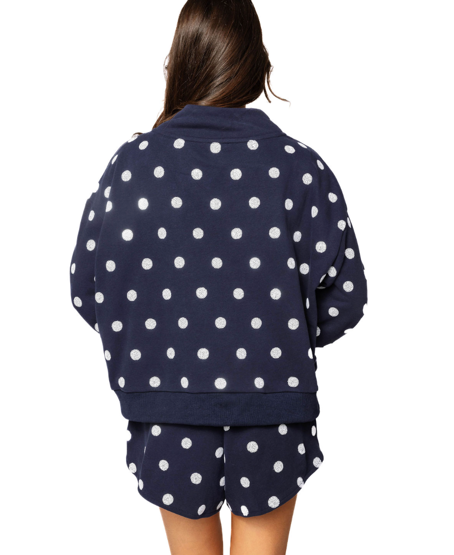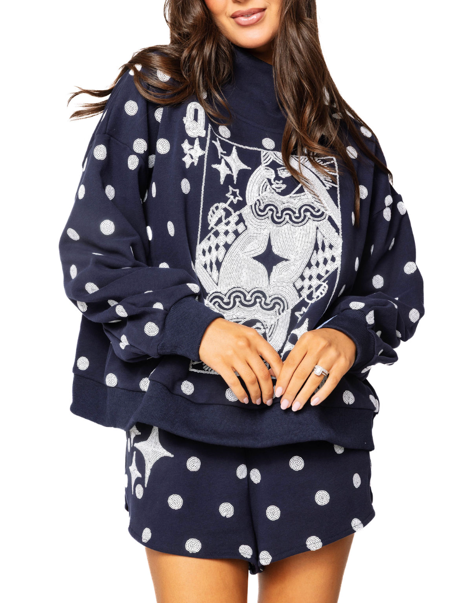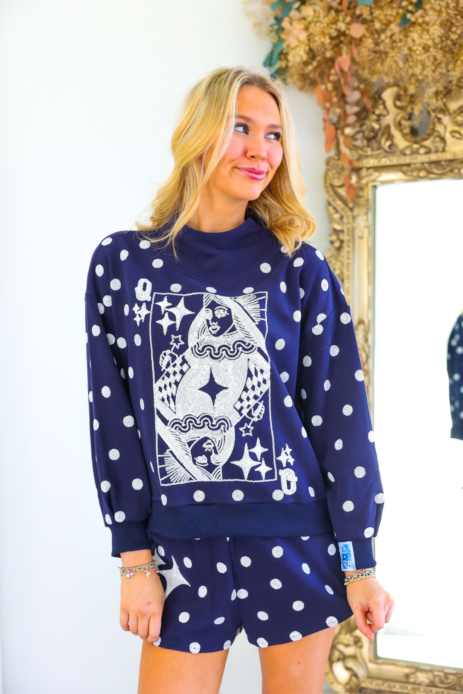 Navy Polka Dot QOS Card Logo Mock Neck Sweatshirt Queen of Sparkles