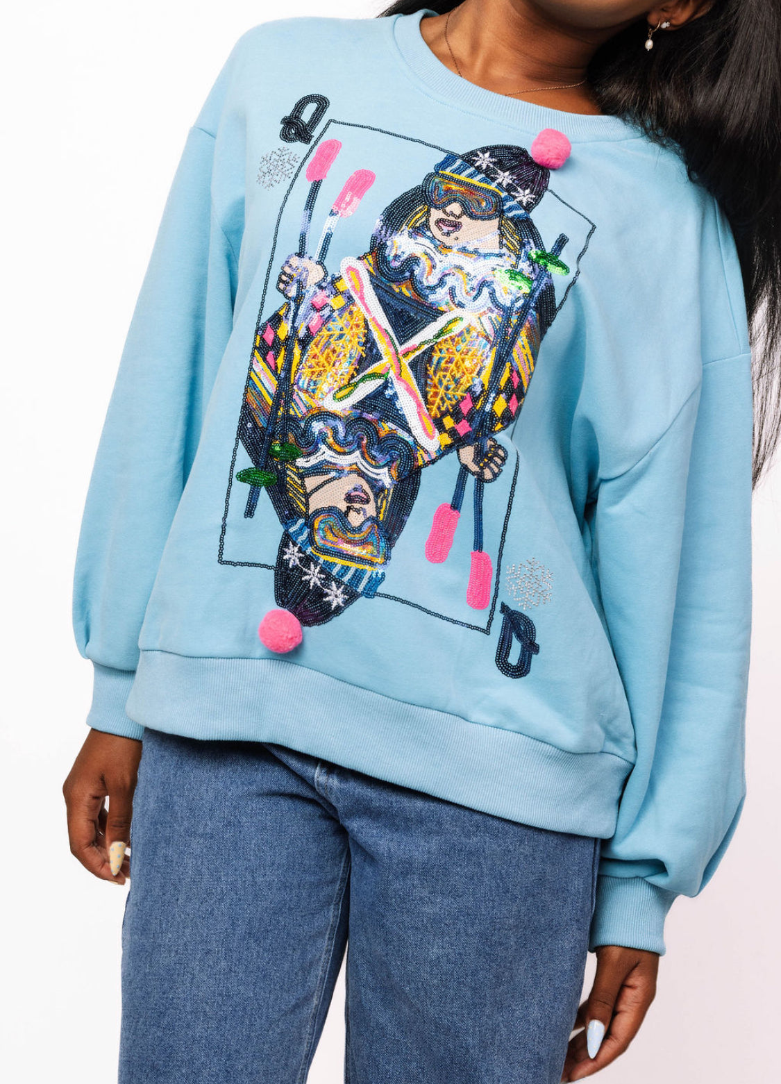 Aqua Ski QOS Card Sweatshirt Queen of Sparkles