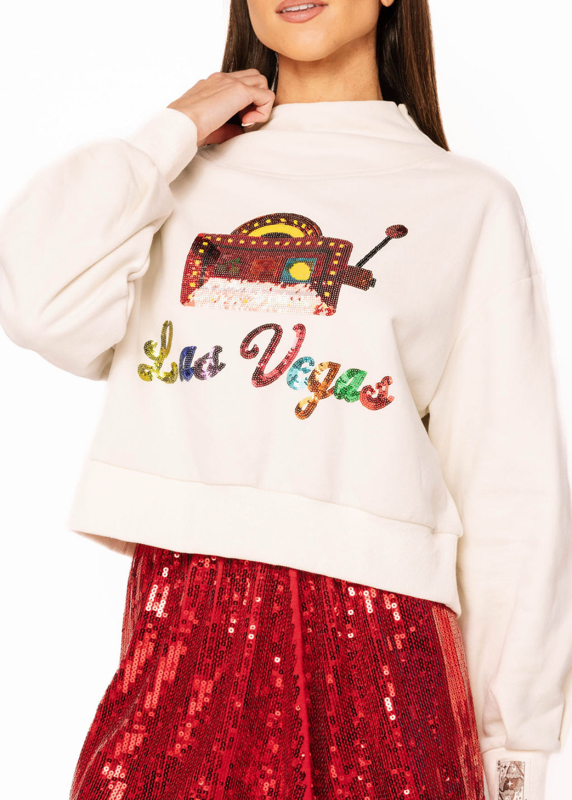 Queen of Sparkles Light Beige "Las Vegas" City Icon Sweatshirt