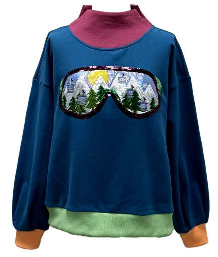 Colorblock Ski Goggle With Reflection Mock Neck Sweatshirt Queen of Sparkles