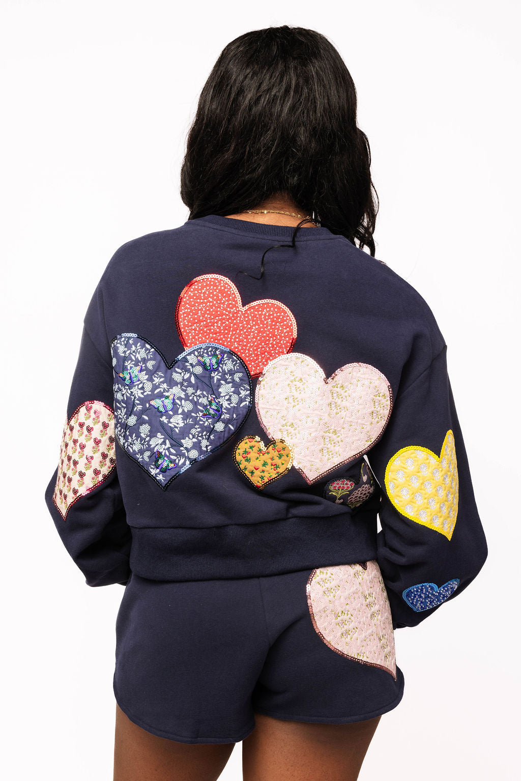 Queen of Sparkles Navy Multi Embroidered Hearts Sweatshirt