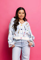 Blue & White Plaid Golf Tee Button Up Cardigan Queen of Sparkles