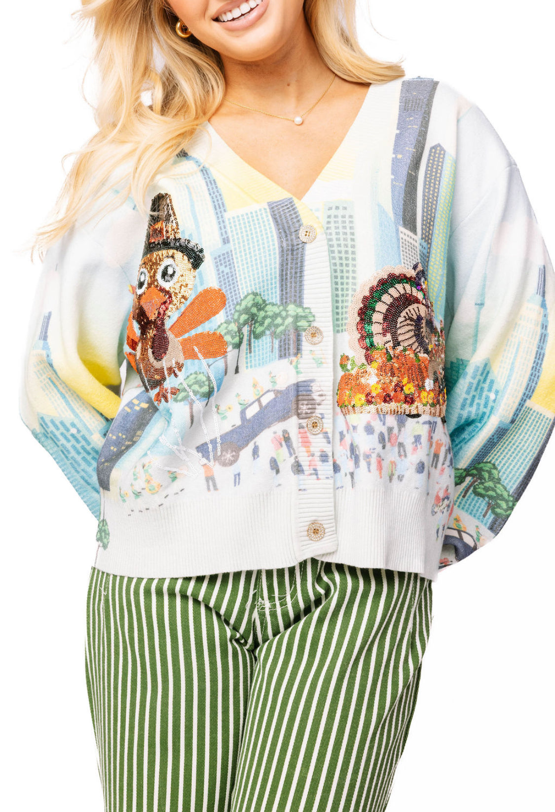 Multi Thanksgiving Parade Button Up Cardigan Queen of Sparkles