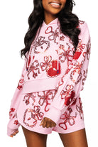 Queen of Sparkles Pink & Red Heart Lock & Key Tie Hoodie Sweatshirt