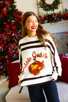 White & Brown 'Gobble' Sweater Queen of Sparkles