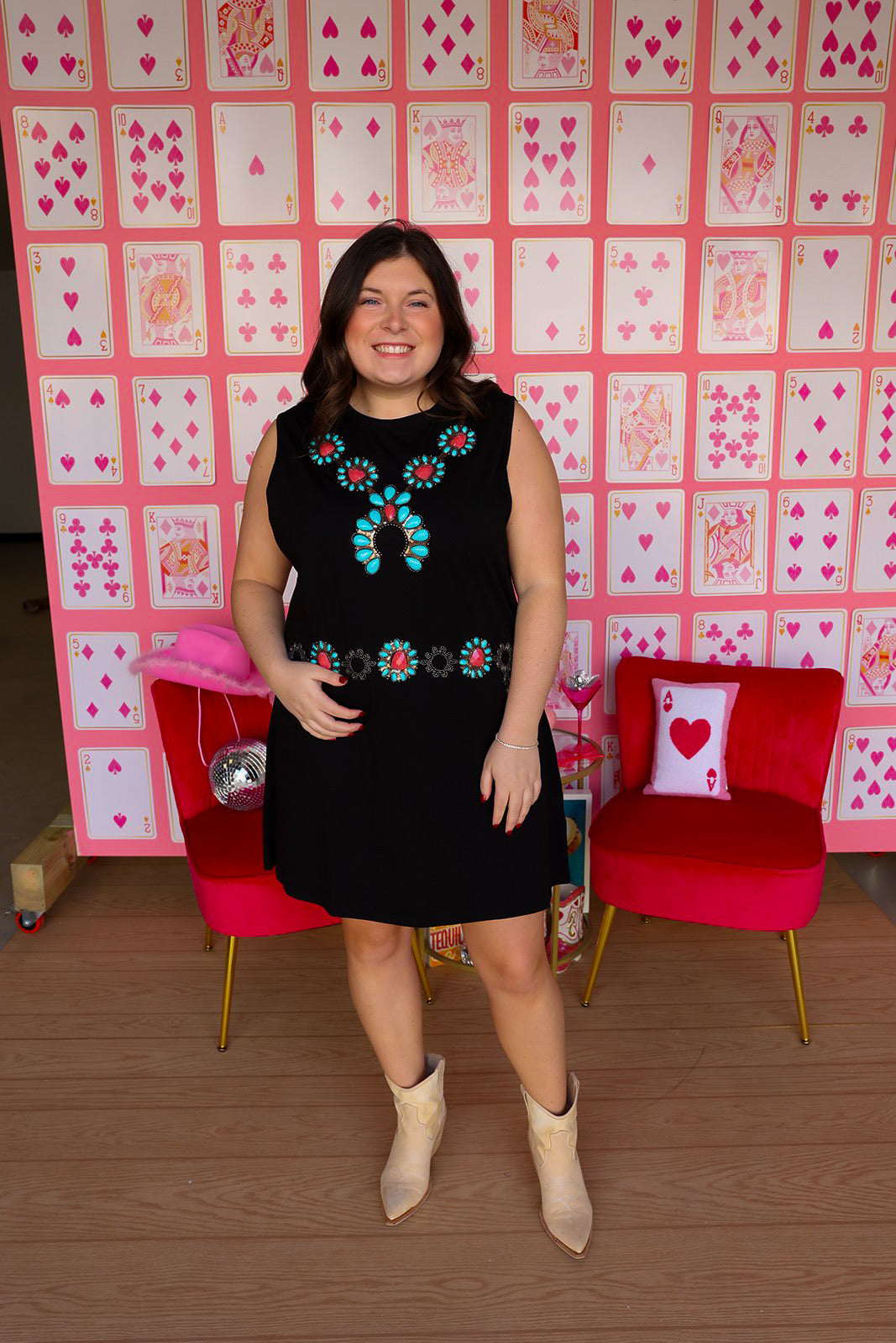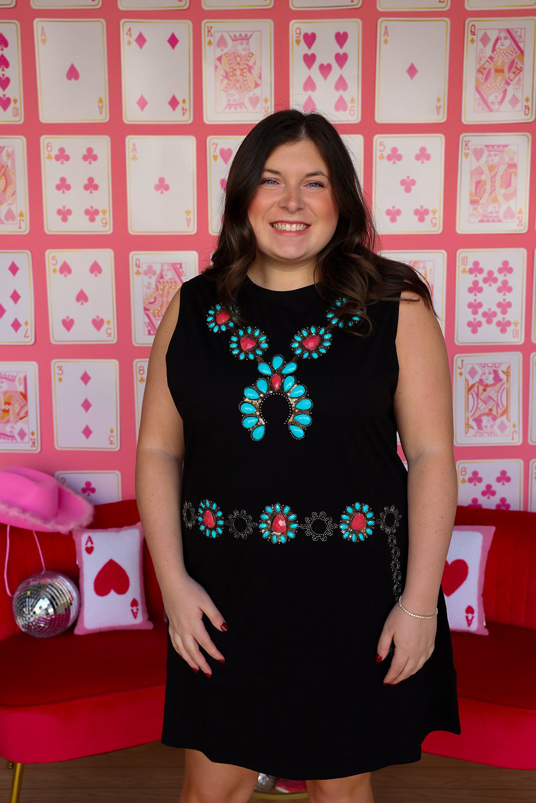 Black Turquoise Necklace & Belt Tank Dress Queen of Sparkles