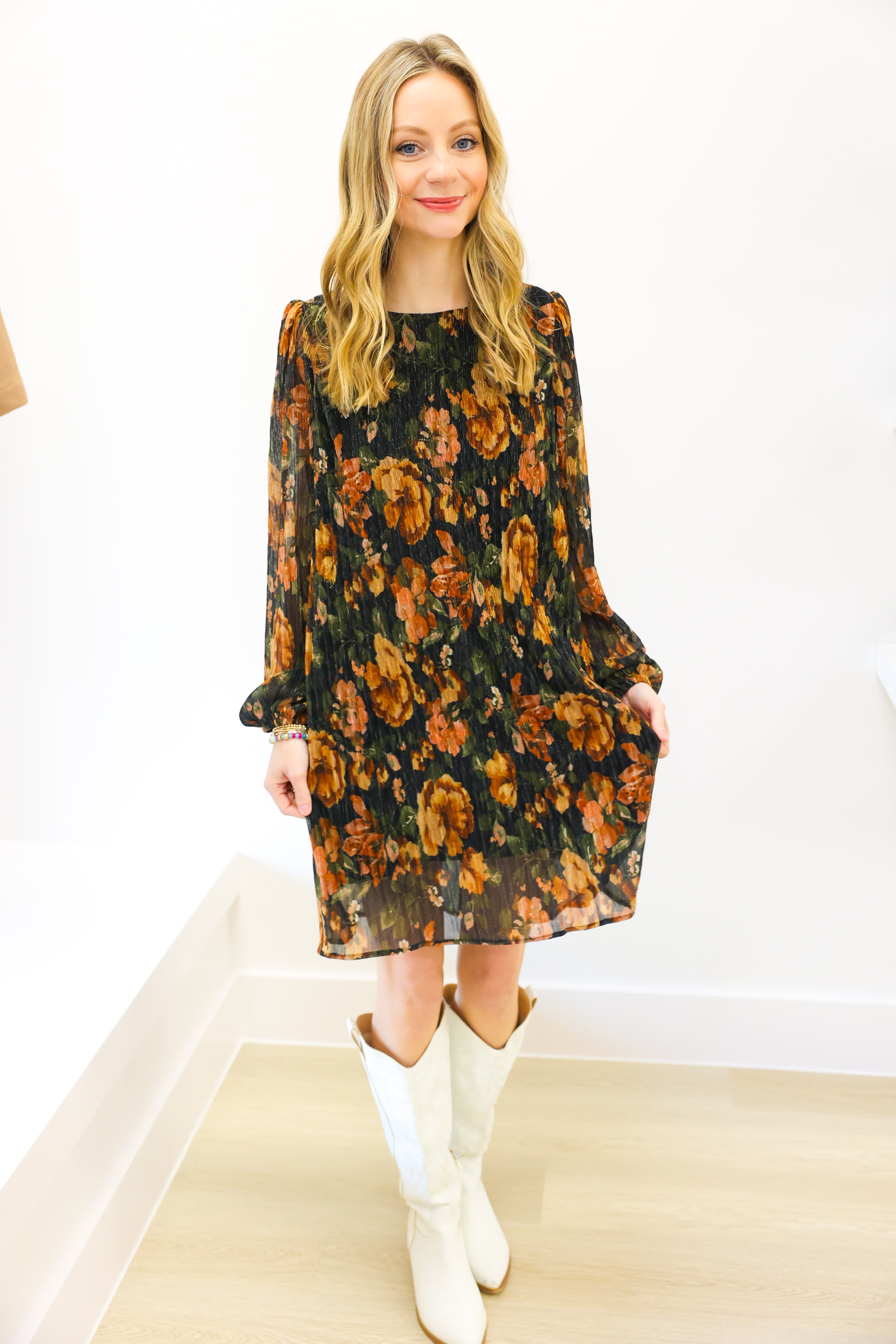 Step out in style with the Pleated Flower Print Mini Dress. Its delicate pleats create graceful movement, while the vibrant floral pattern adds a fresh, feminine touch. Perfect for warm days and special occasions, this dress combines comfort with eye-catching design to keep you looking effortlessly chic.
