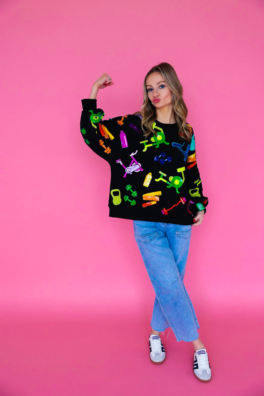 Black Multi Workout Equipment Sweatshirt Queen of Sparkles