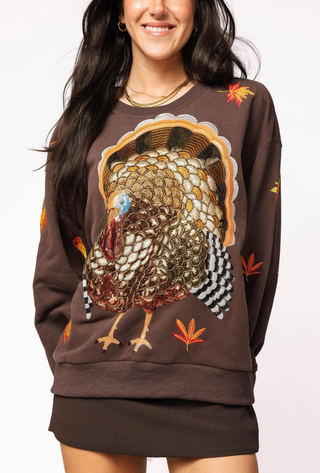 Brown Big Turkey & Leaves Sweatshirt Queen of Sparkles