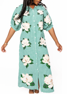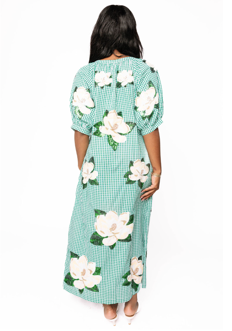 Green & White Gingham Magnolia Button Up Cotton Midi Dress Queen of Sparkles