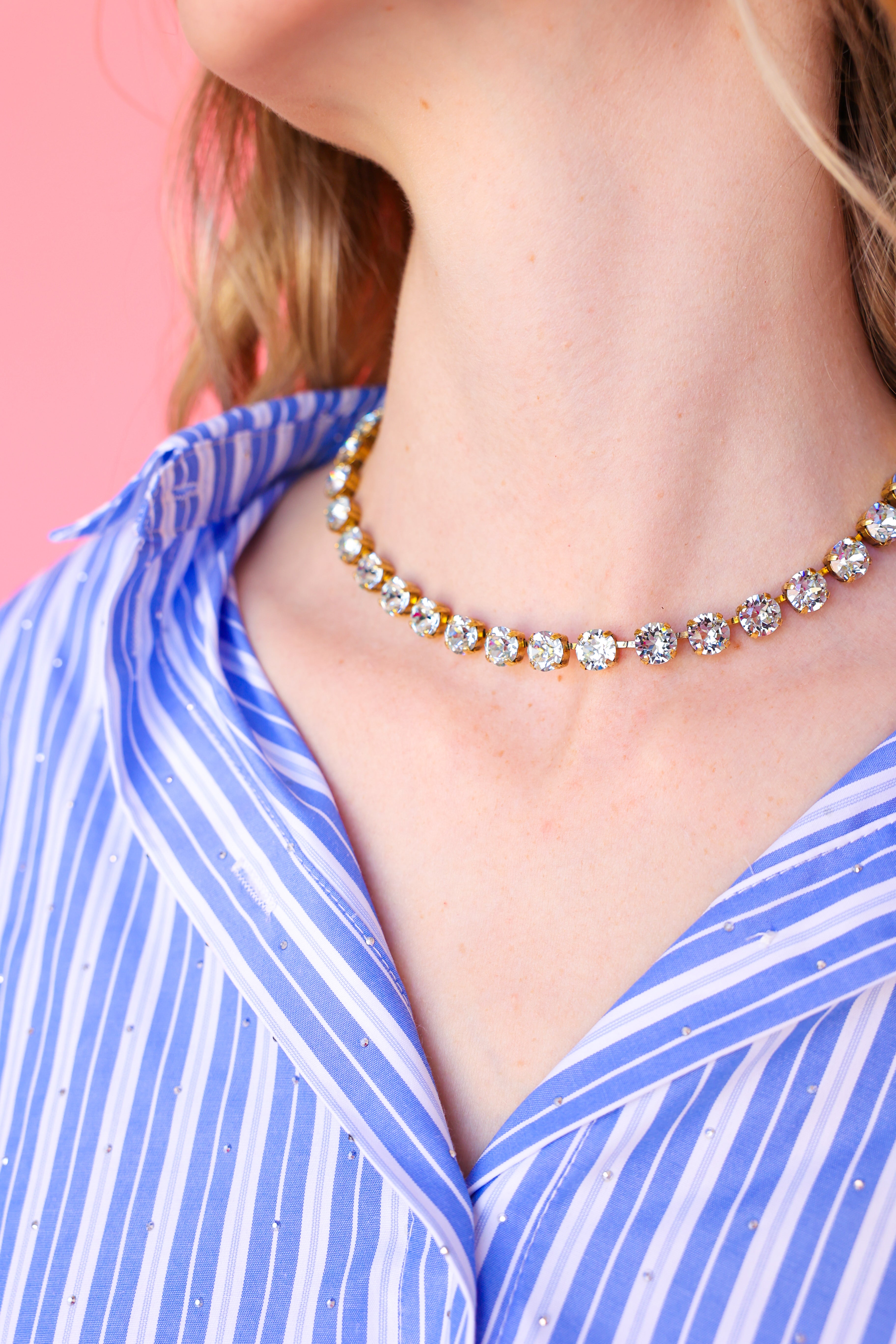 This Oakland Necklace brings serious style, with its high quality crystals and antique gold plating, to ensure you'll glitter and shine like the star that you are! Strut your stuff in this 13" necklace with a 3" extension, and you'll be sure to turn heads and receive compliments all day. Made with care in Canada, you'll be looking and feeling fab!