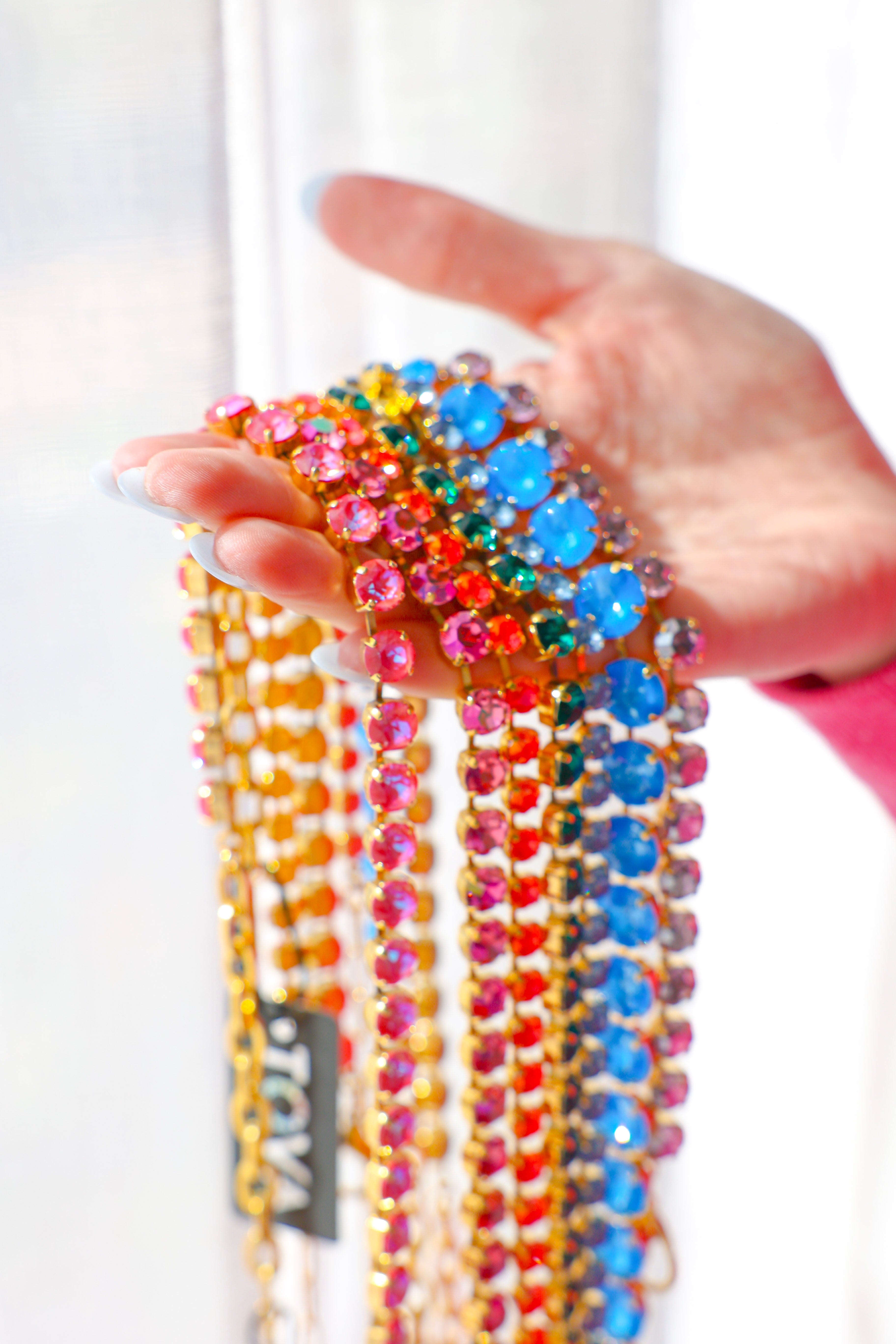 Queen of Sparkles Striped Pink Disco Cowgirl Button Up Collared Top