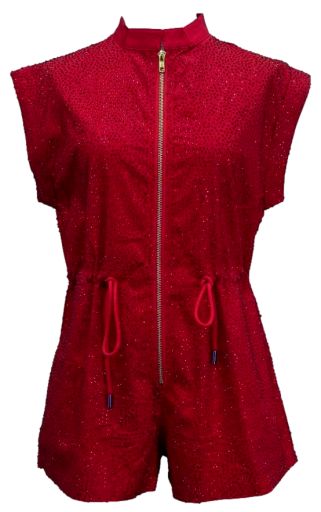 Crimson Rhinestone Zip Up Romper Queen of Sparkles