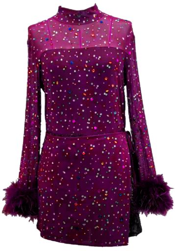Pink Feather Sleeve Multi Rhinestone Sequin Short Romper Queen of Sparkles