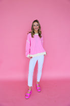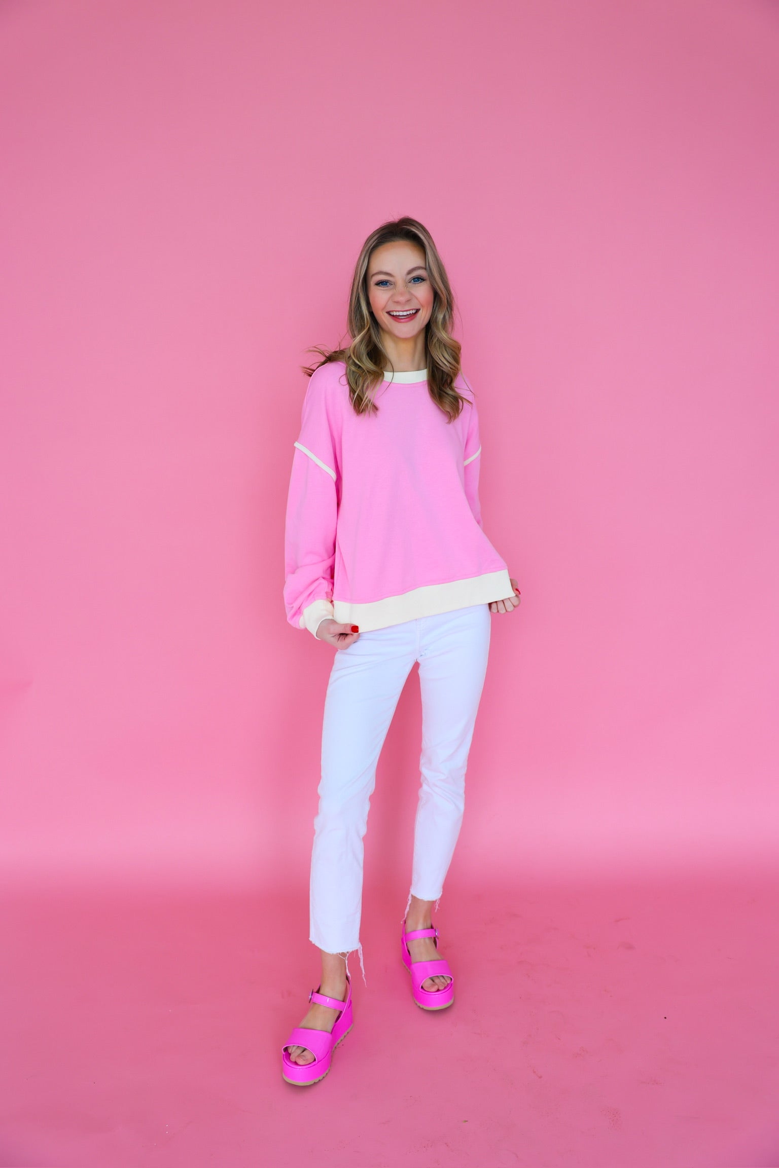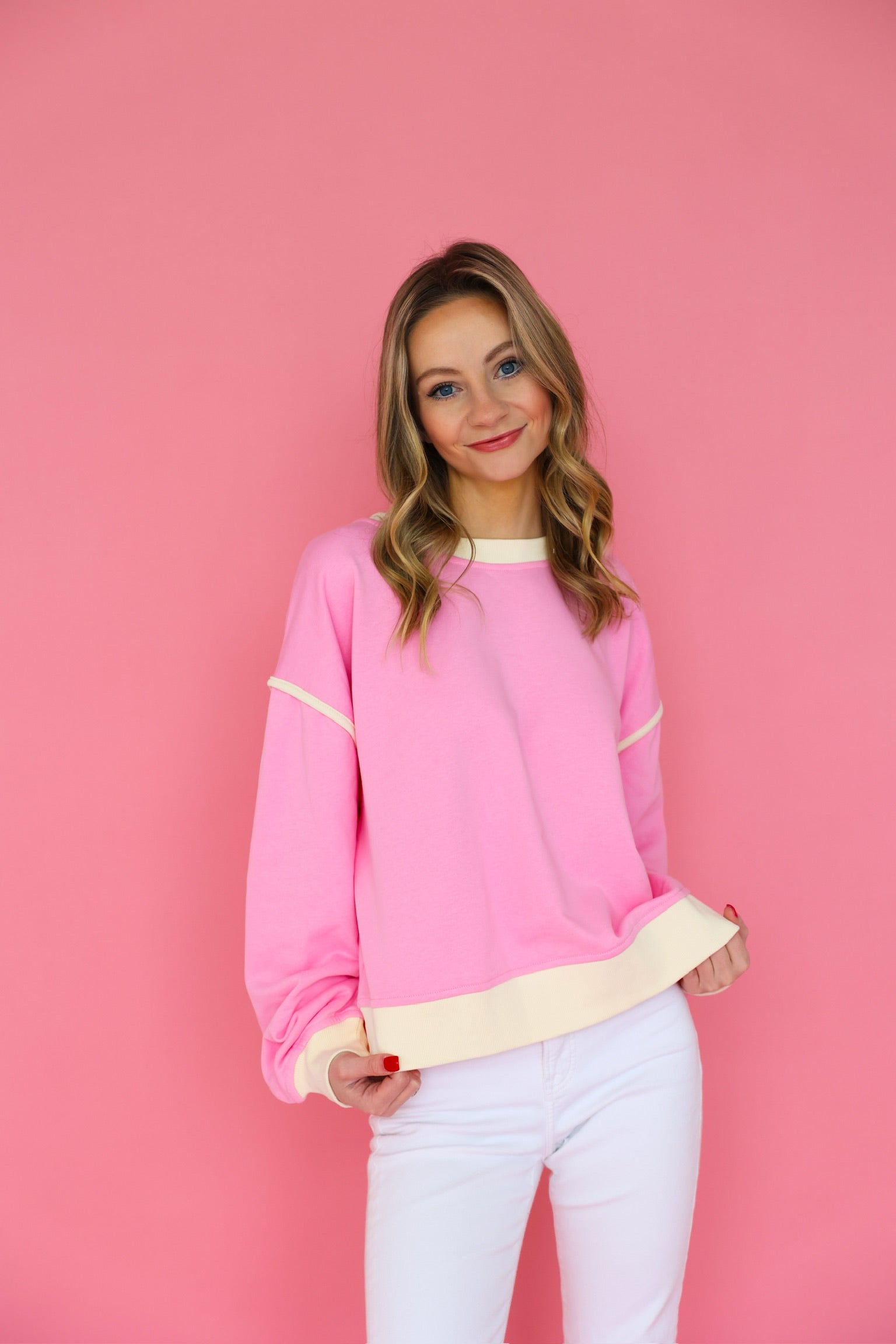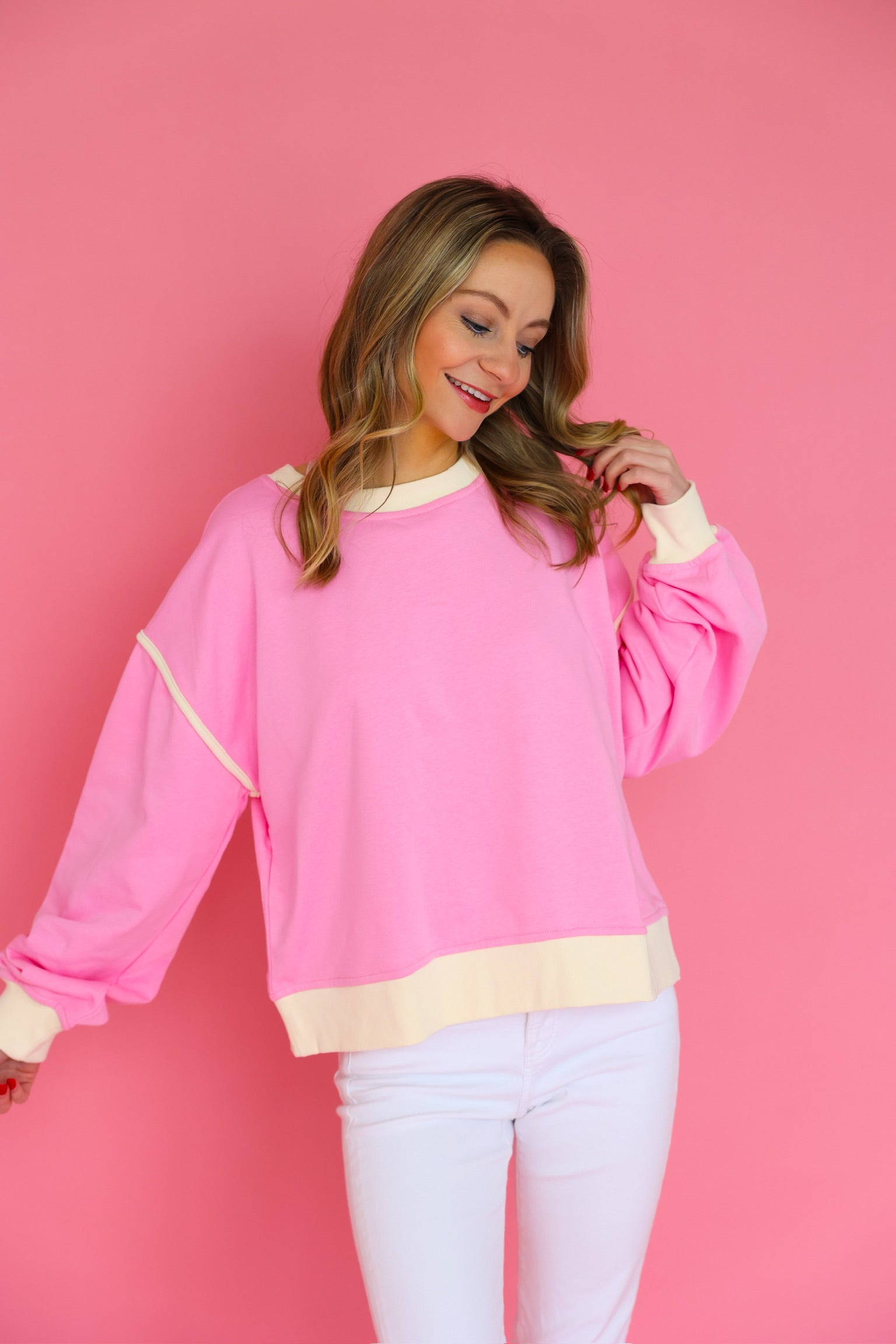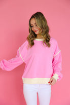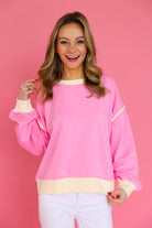 Stay cozy yet stylish with this long sleeve! This solid round neck top features a contrasting trim and an slightly oversized fit for a fashionable twist. Perfect for any casual or dressy occasion for an effortlessly chic look!