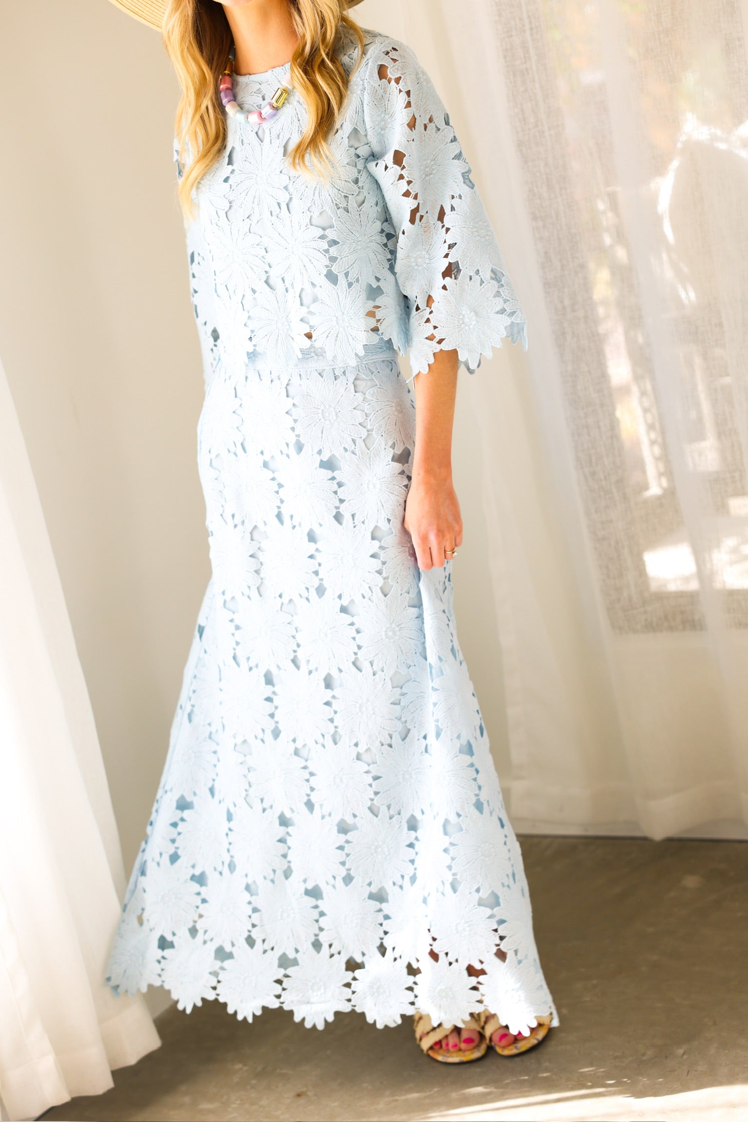 Fresh, airy, and timeless, the TCEC Eyelet Two-Piece Set in Baby Blue is the perfect blend of comfort and style. Featuring intricate eyelet detailing and a lightweight feel, this matching set creates an effortlessly polished look you’ll reach for again and again.